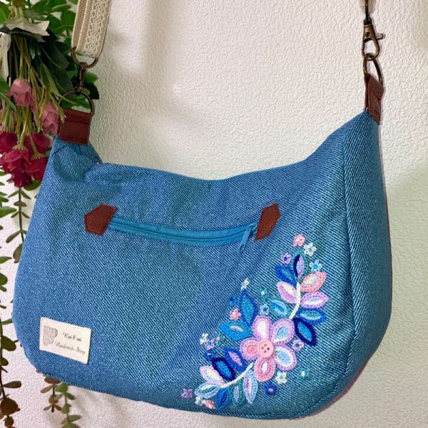 《 れい¥れいのハンドメイド生活 》 ◇ご覧いただきありがとうございます◇ ☆お出掛けショルダートートバッグ☆2WAY☆手刺繍 デニム風プリント生地に 淡い色合いの花柄手刺繍をしました 蝶々のモチーフが立体的で飛んでいるようです とても軽い仕上がりのショルダートートバッグです 横上部31㎝ たて中央20㎝ マチ底12㎝ ショルダー紐71㎝~130㎝ 表ポケット1個 内ポケット3個 バッグ本体の重さ(ショルダー紐含む) 約205g 《 素材 》 ☆表無地 綿100% (特有のネップ・織り糸がある場合がございます事を予めご了承下さい) ☆内布 綿100% 《 お支払い方法 》