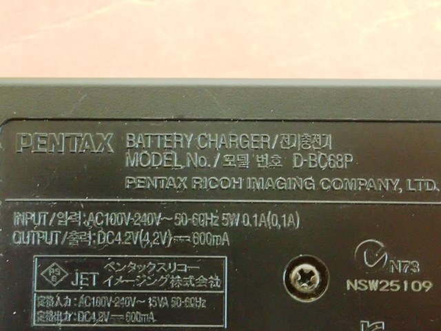 PENTAX社製 デジタルカメラ バッテリーと充電器とACプラグコードのセットです。