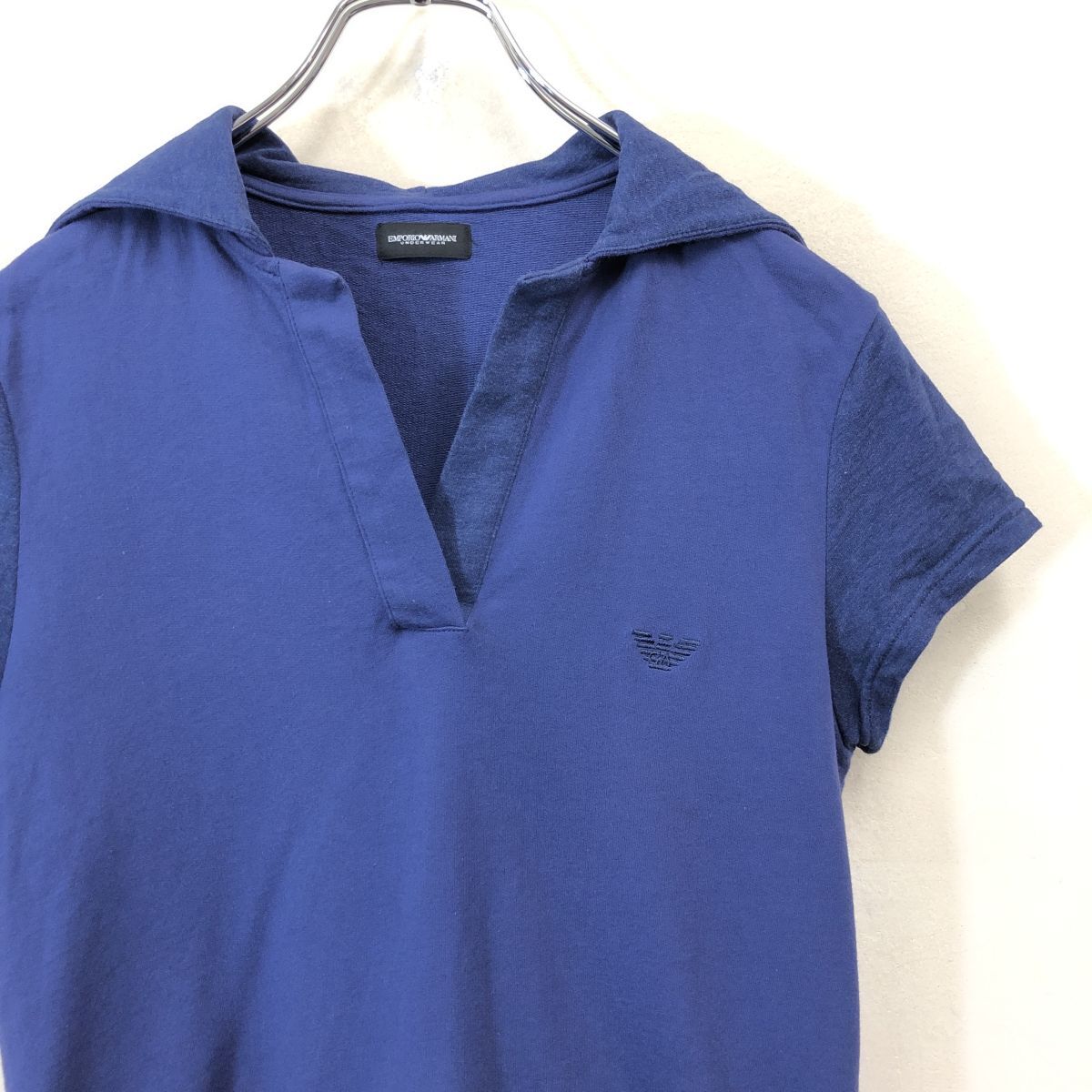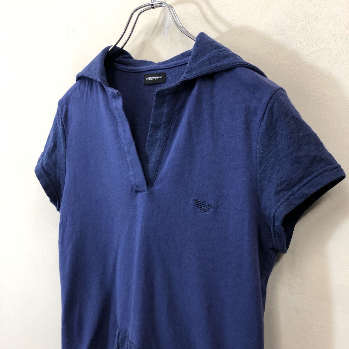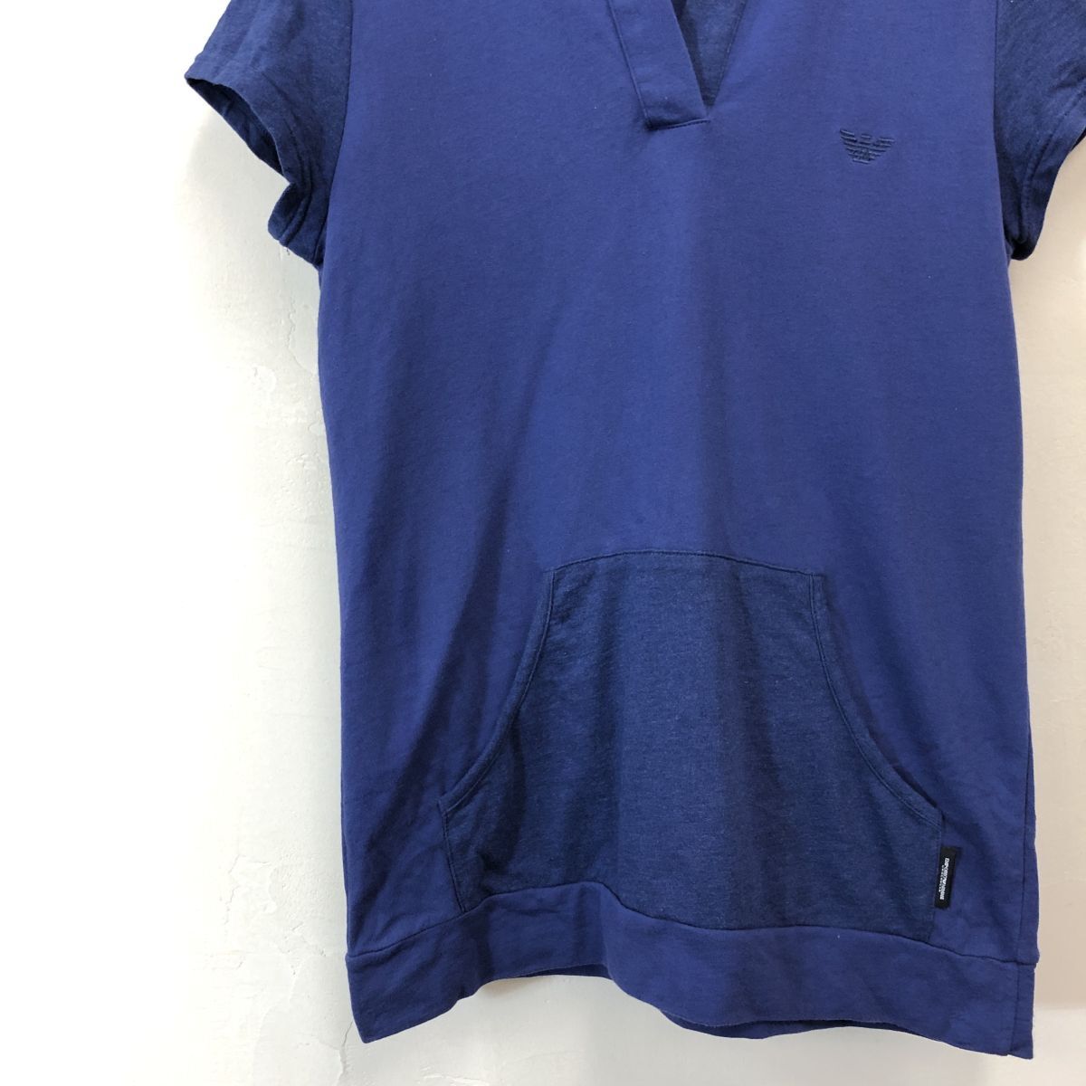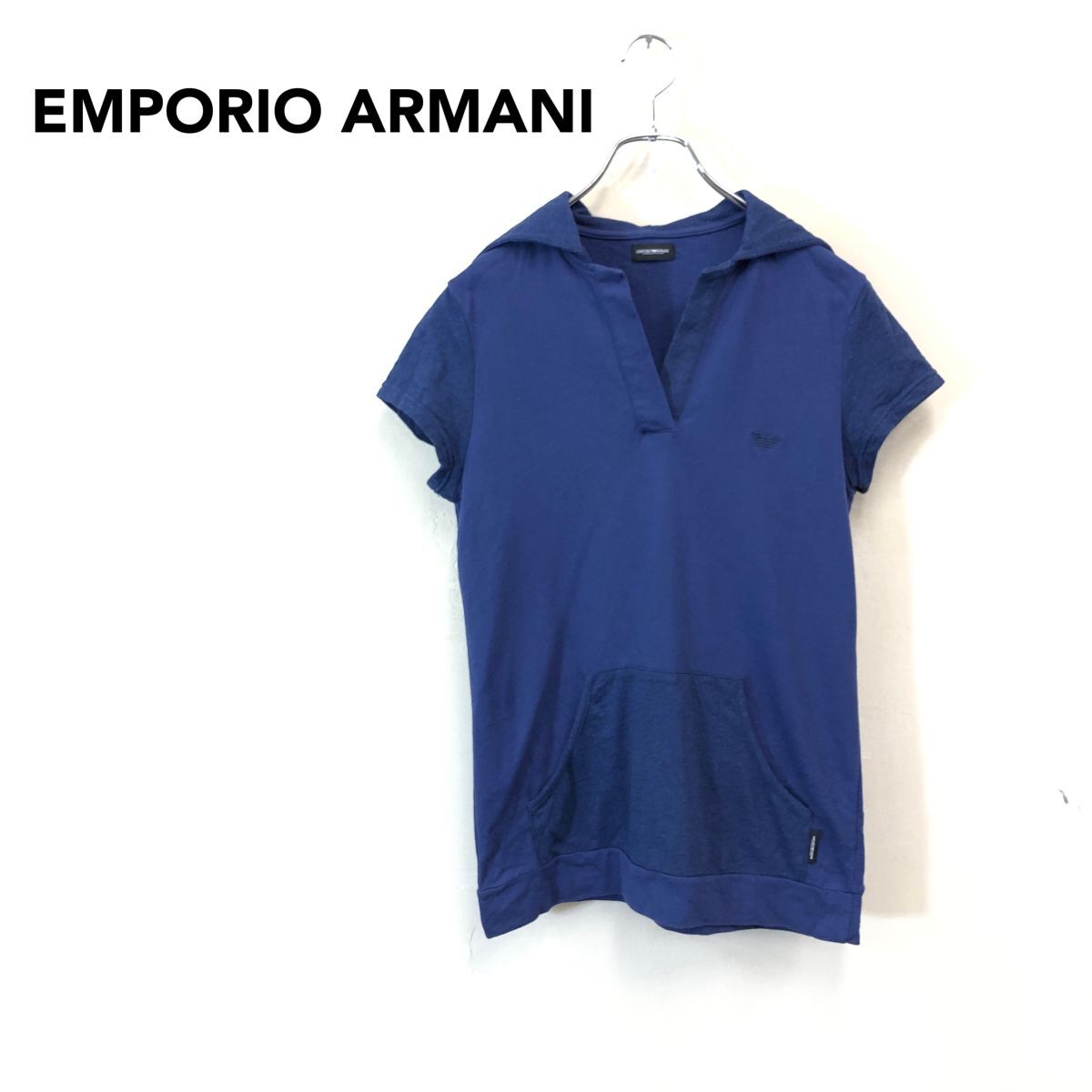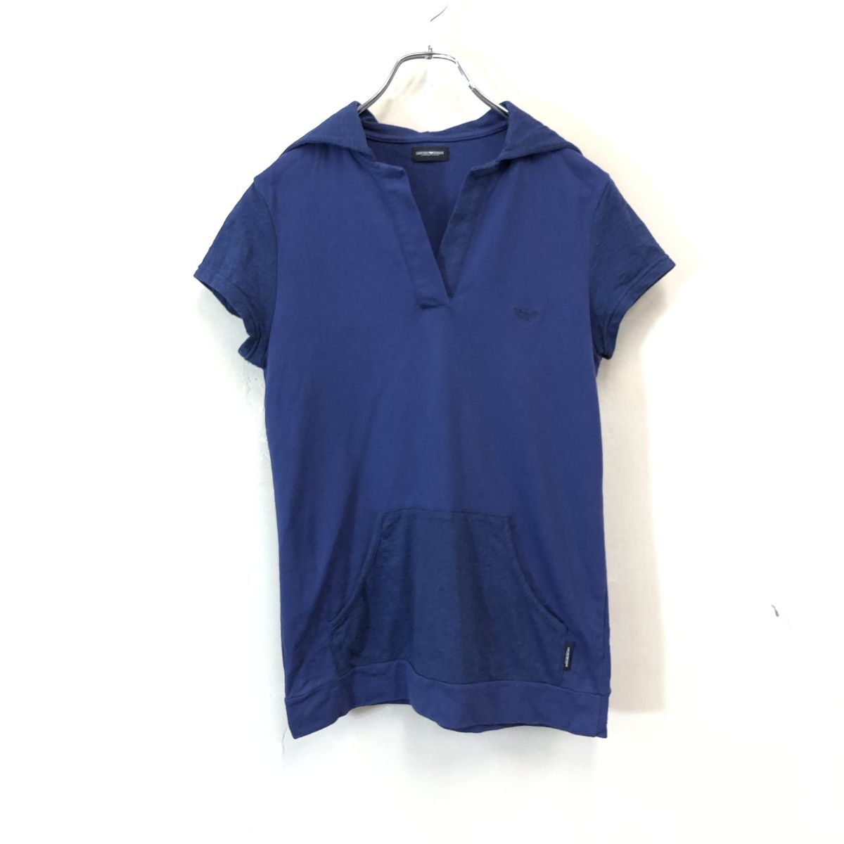 2K1894-Y◆EMPORIO ARMANI エンポリオアルマーニ プルオーバーパーカー フレンチスリーブ スキッパー 刺繍ロゴ ◆sizeM パープル 綿