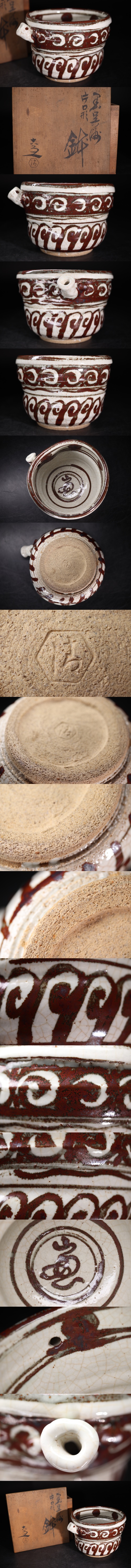 | 清水六兵衛 造 「 黒呉須 片口形 鉢 」 共箱付 / 京焼 清水焼 鉄絵 茶器 煎茶道具 .G2551 |