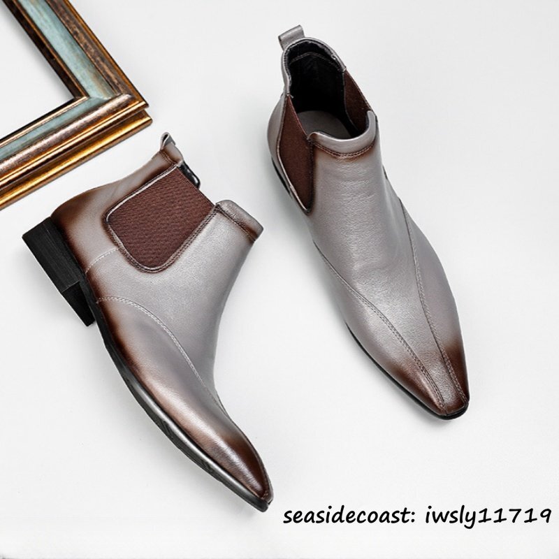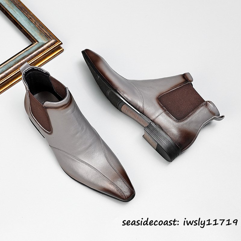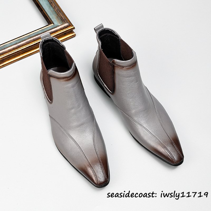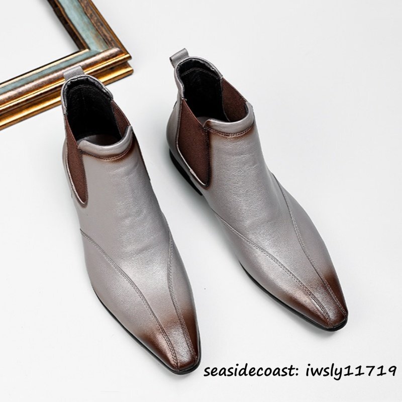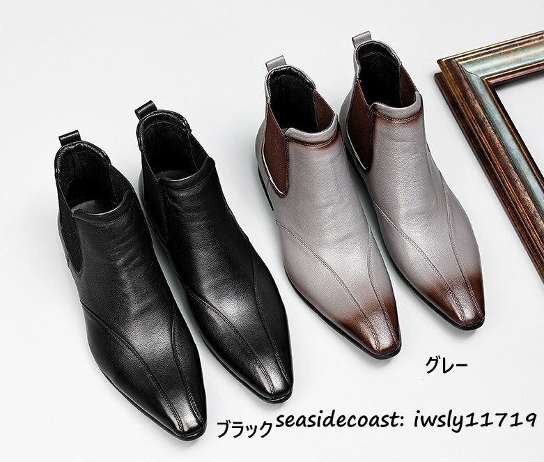 極美品★ショートブーツ 本革 メンズ イギリス風 職人手作り マーティンブーツ ビジネスシューズ レザーブーツ 皮靴 牛革 グレー 26.0cm