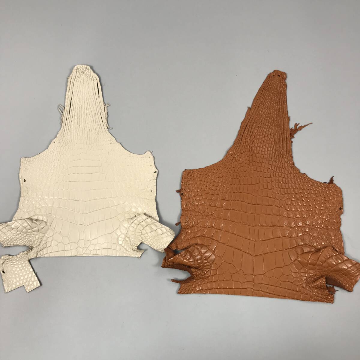 様々な色のワニ革を取り揃えております。サイズも様々です。