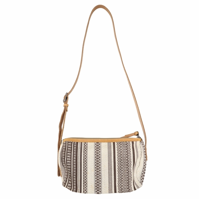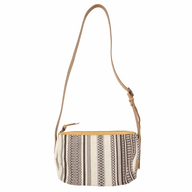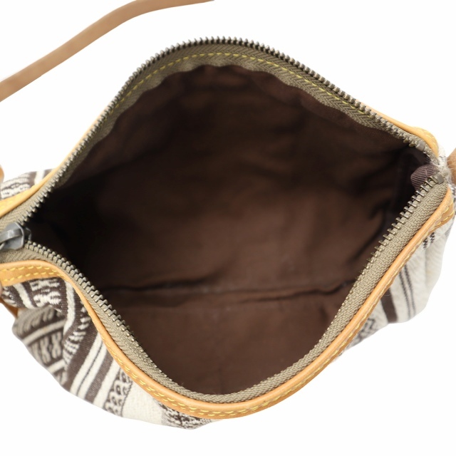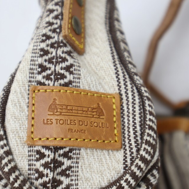 LES TOILES DU SOLEIL レ トワール デュ ソレイユ コットン レザーストラップ ショルダーバッグ BEIGE × BROWN ベージュ × ブラウン レディース