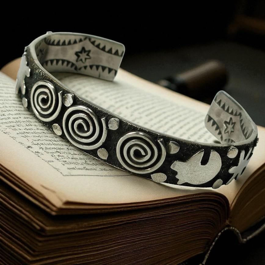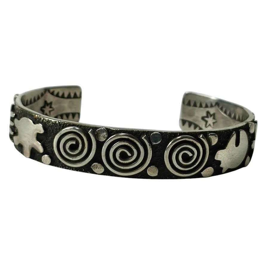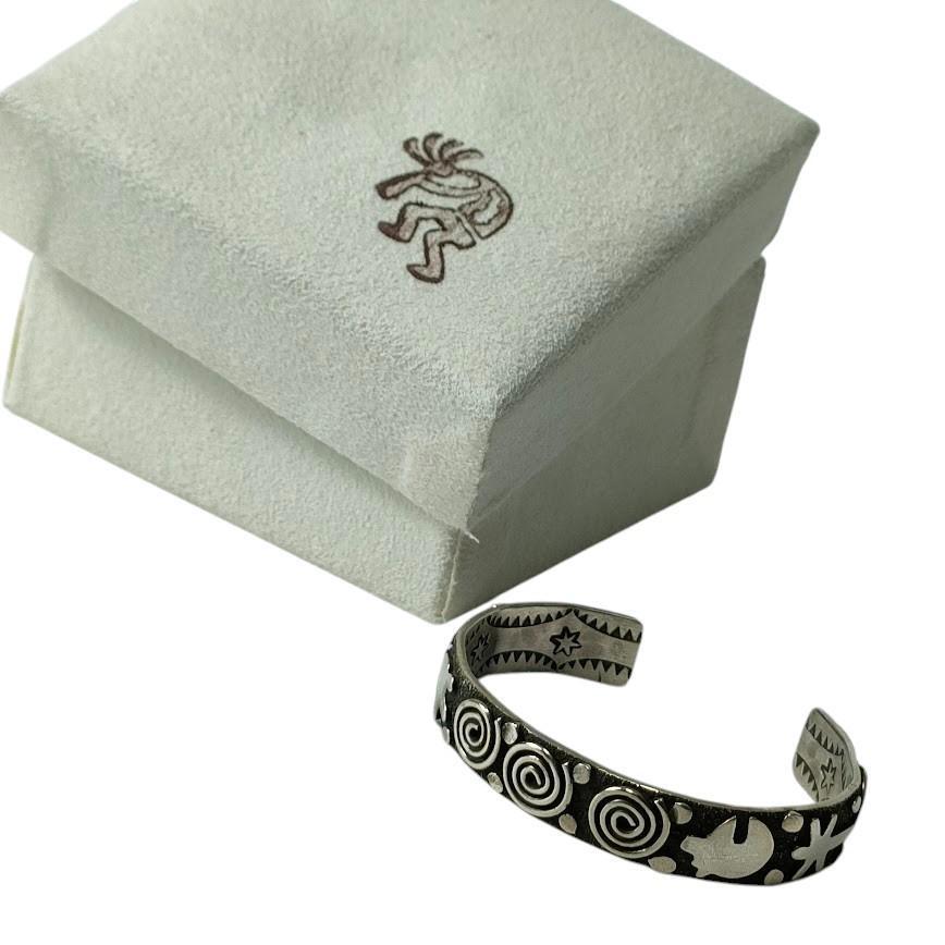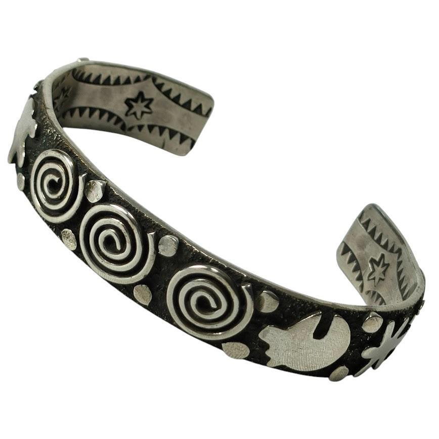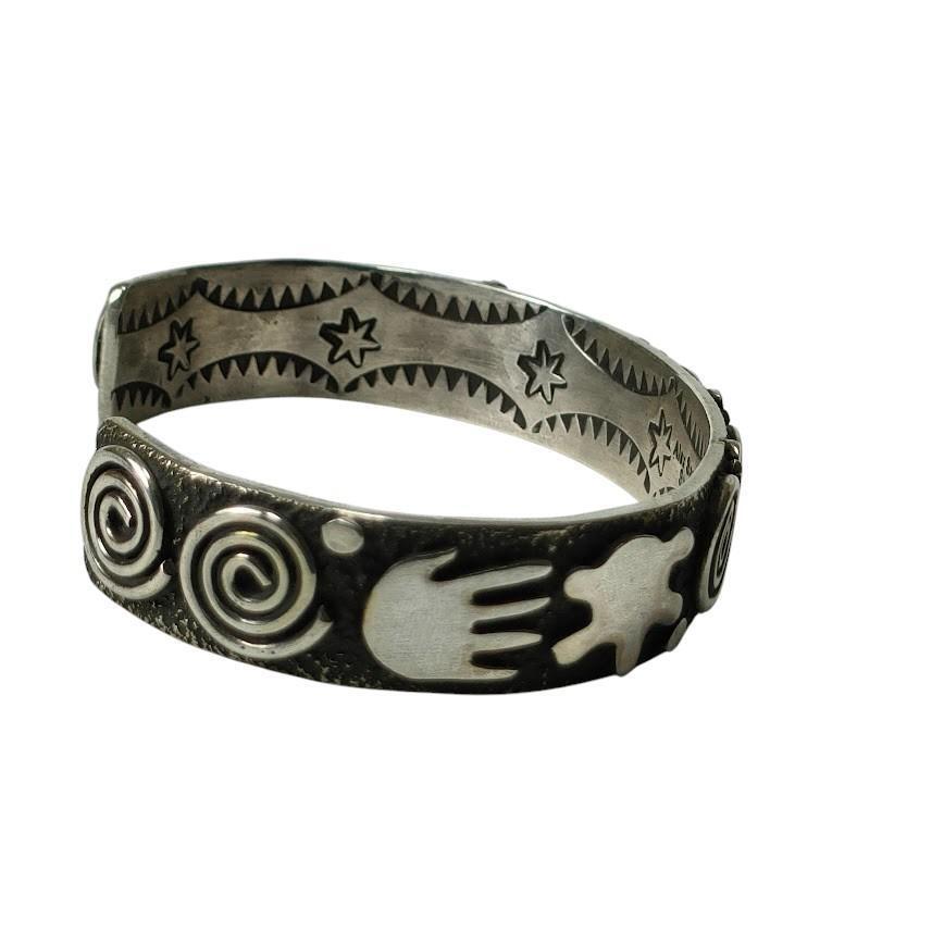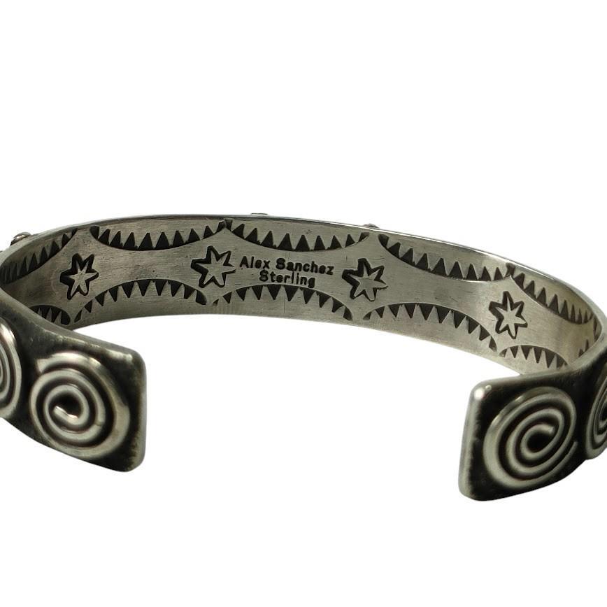 箱付 Navajo ナバホ族 Alex Sanchez アレックス サンチェス作 ペトログリフ スタンプワーク スターリング シルバー 銀製 バングル メンズ