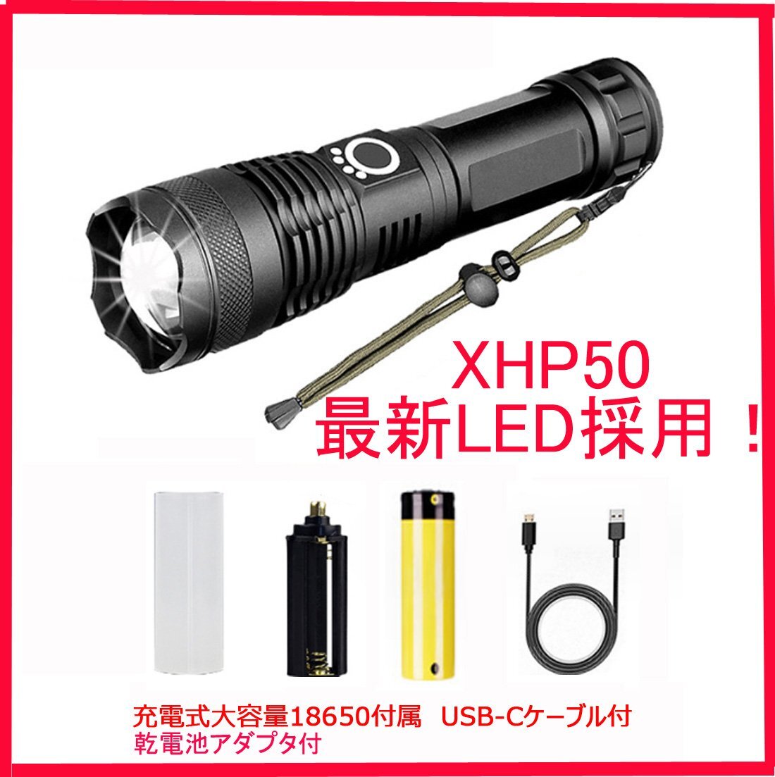 【最新版】 強力 充電式 懐中電灯 LEDライト XHP50採用