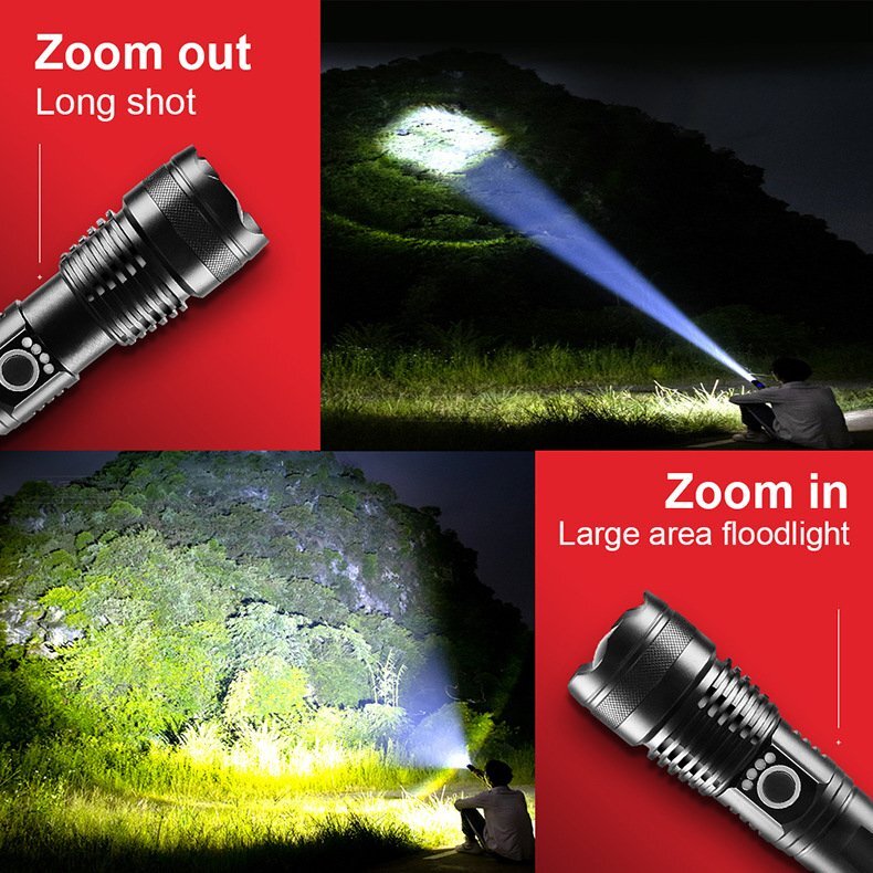 最新 超強力 アルミボディ 充電式 懐中電灯 LEDライト XHP50 18650蓄電池付 ズーム可 残量表示 フラッシュライト 5モード調