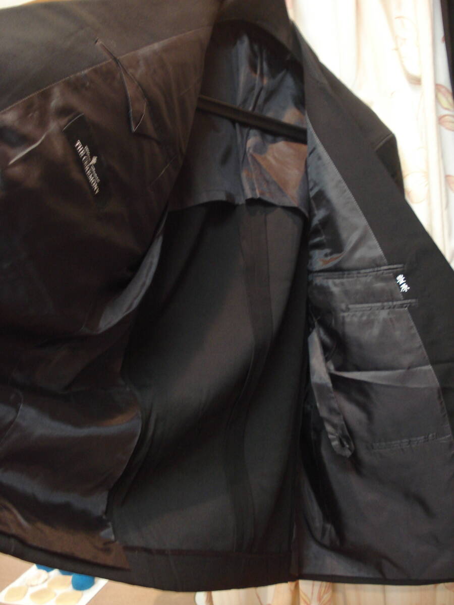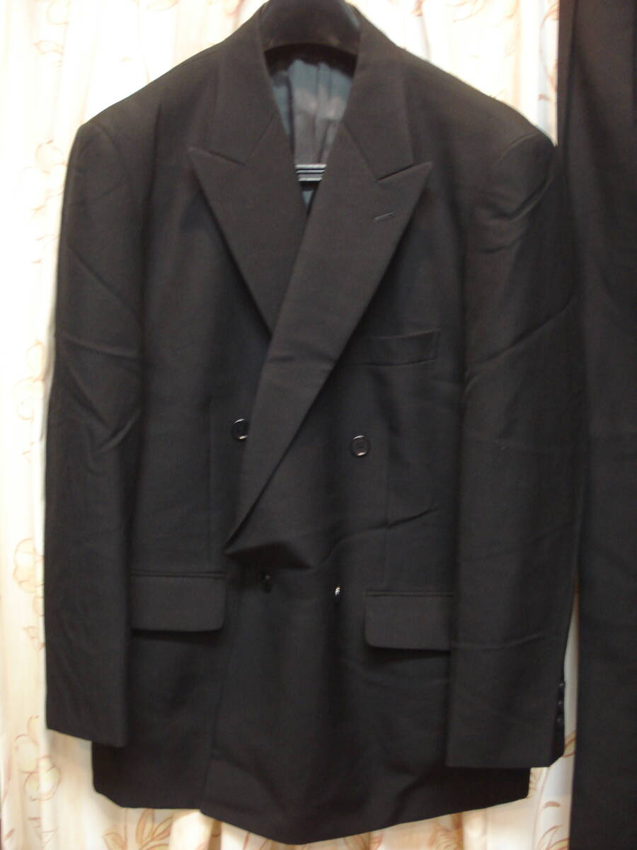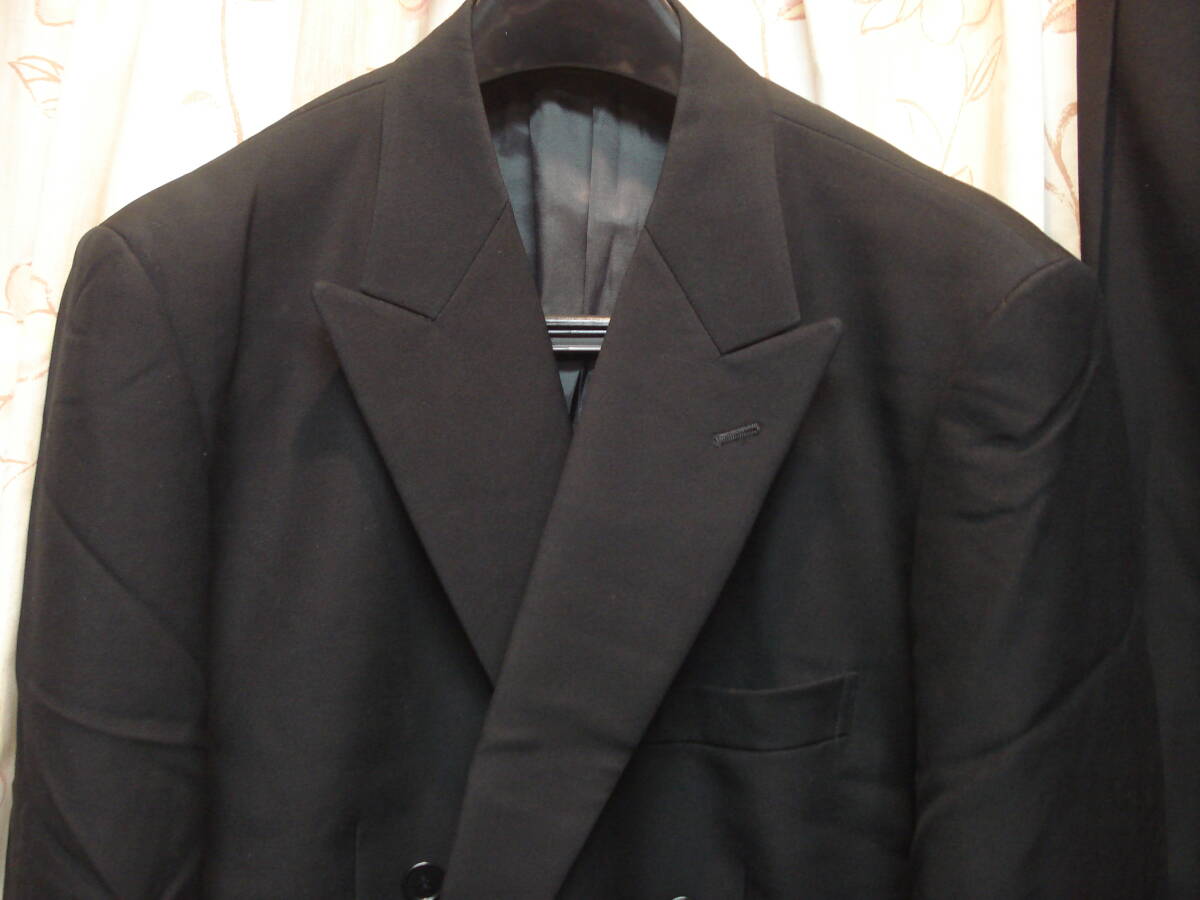 送料無料!美品!秋・冬もの!BB5サイズ!ウェスト:85cm~102cm!アジャスターにて調節対応可能!黒色!ブラックフォーマル色!毛:100%!定番ブラックフォーマルダブルスーツ!です。。色は、とても高級感あるオシャレな、「黒色に同系統色薄いストライプ柄入り!」の、秋・冬もの!BB8サイズ!ウェスト:88cm!毛:100%!です。表示サイズは、「BB8サイズ!」で、「身長:170cm・胸囲:100cm」で、素人寸サイズは、約「肩幅:53cm・着丈:81cm・袖丈:64cm・脇下幅:63cm・ウェスト:88cm!・股下:80cm・ズボン裾幅:24cm」です。股下寸法:80cmですが、折り返し部が、約8cmありますので、最大股下寸法:約86cm位まで可能です。。ウェスト部の生地の余生地が、約8cmありますので、あと約6cm位はウェストを出す事が可能です。ズボンのタックは、片側2タックの合計4タックです。ベントとは上着の背面下部の切れ目の事です。両側に1つづつ合計2つありますので、「サイドベント!」です。上着の背中裏地は、「総裏!」です。素材は、「毛:100%」です。。