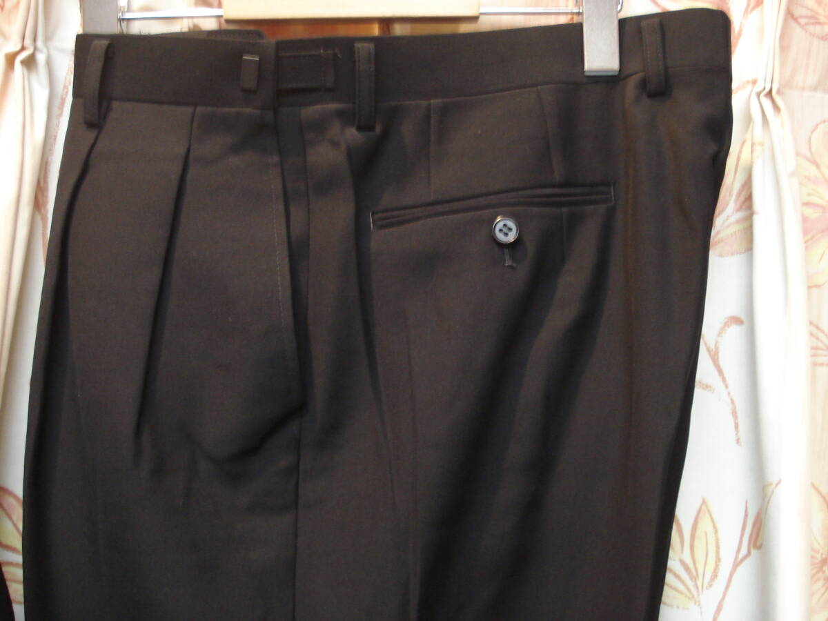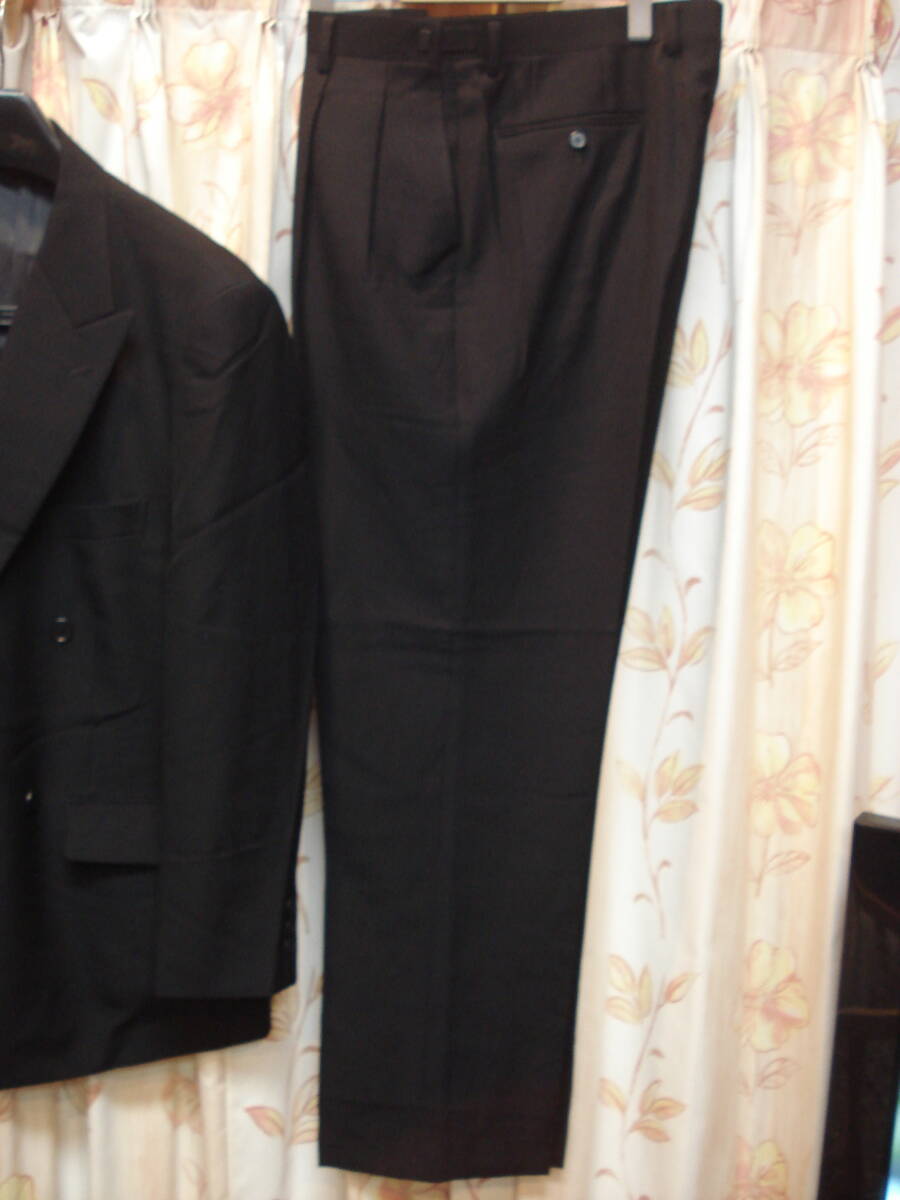 送料無料!美品!秋・冬もの!大きな人用!BB8サイズ!ウェスト:88cm!黒色薄い同系統色ストライプ柄入り!毛:100%!定番シングルスーツ!!です。