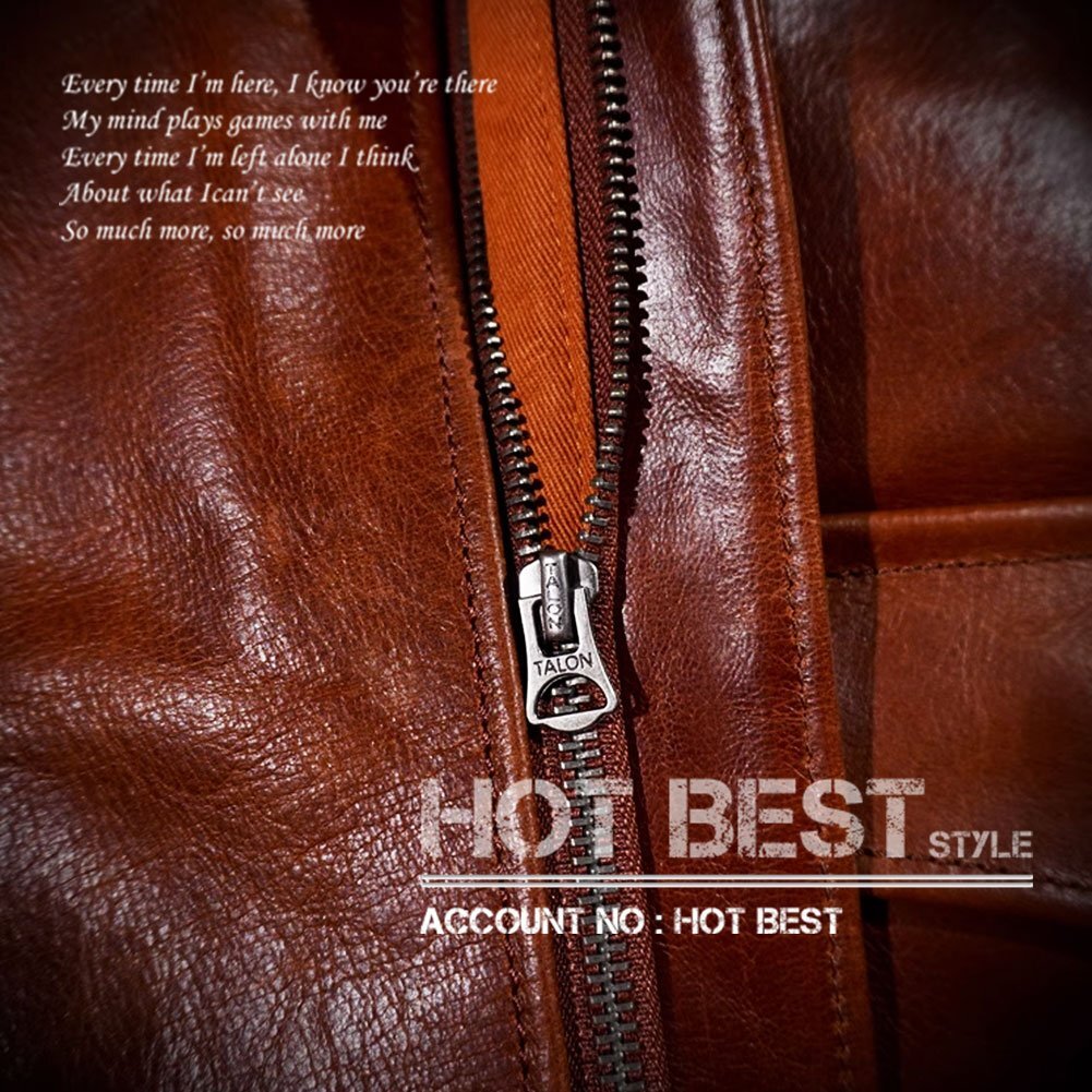 特徴はスナップダウンカラー、前立てトップのホック、肩口のエポレット、ジッパーフロント、フラップポケットのボタンは隠されたドットボタン、袖と裾のニットリブ、衣服にかかる張力を制限するために、1枚革で作られた後ろ身頃などです。