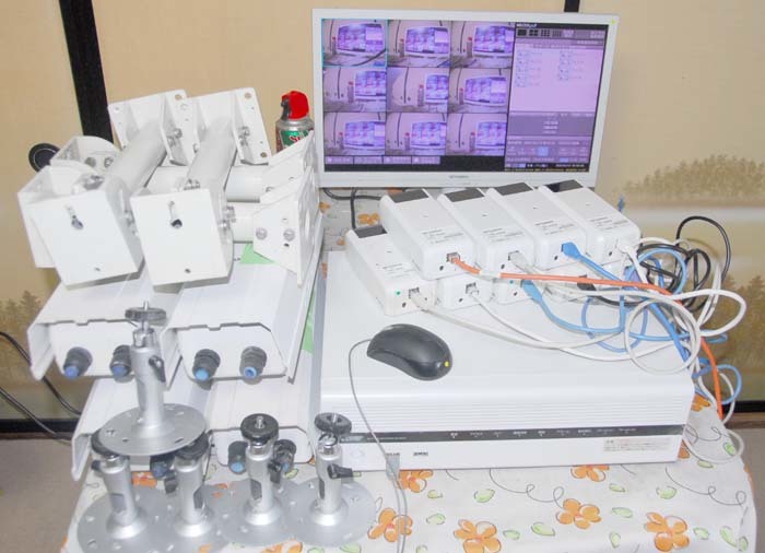 屋外設置用ハウジング4本と室内設置用カメラスタンド5本をセットにした基本作動確認中古です。