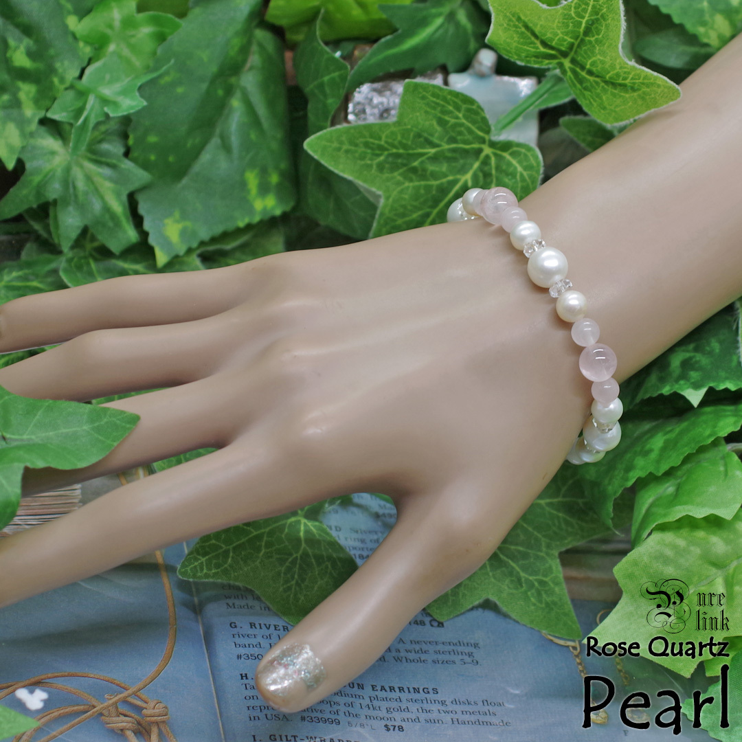 『淡水パール』と『ローズクォーツ』を組み合わせた、上品で可憐なブレスレットです。