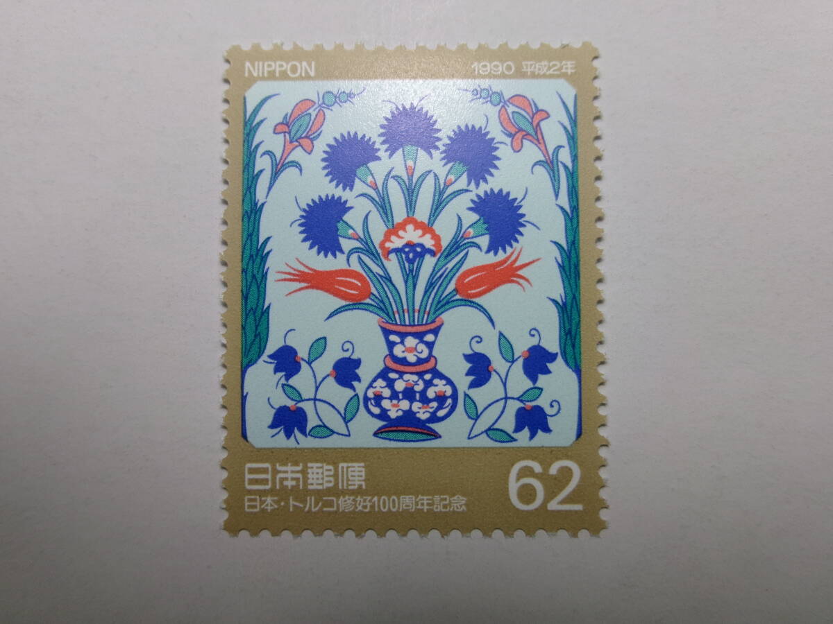 1990年 日本トルコ修好100周年 62円 未使用 記念切手