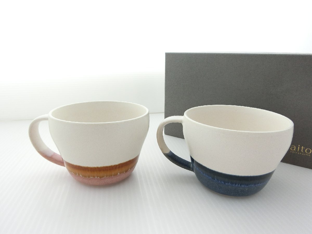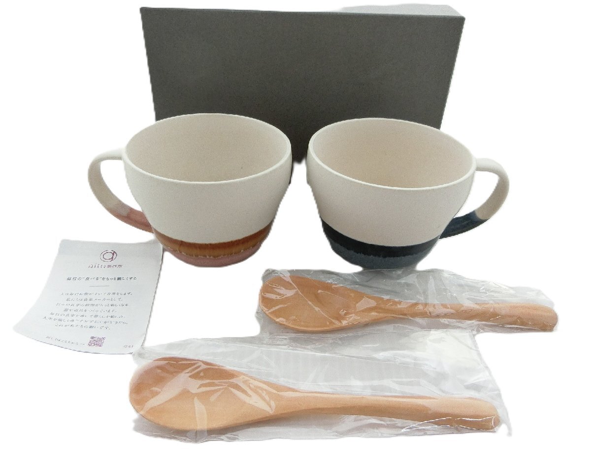 ●未使用 美濃焼 aito ITSUMO いつも なごむ ペアマルチカップ スプーン付 スープカップ マグカップ ペアセット 共箱