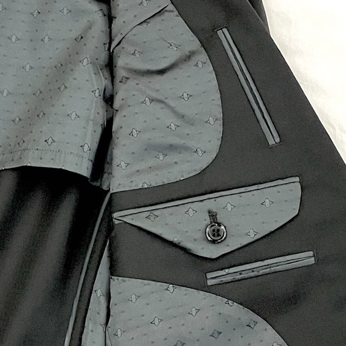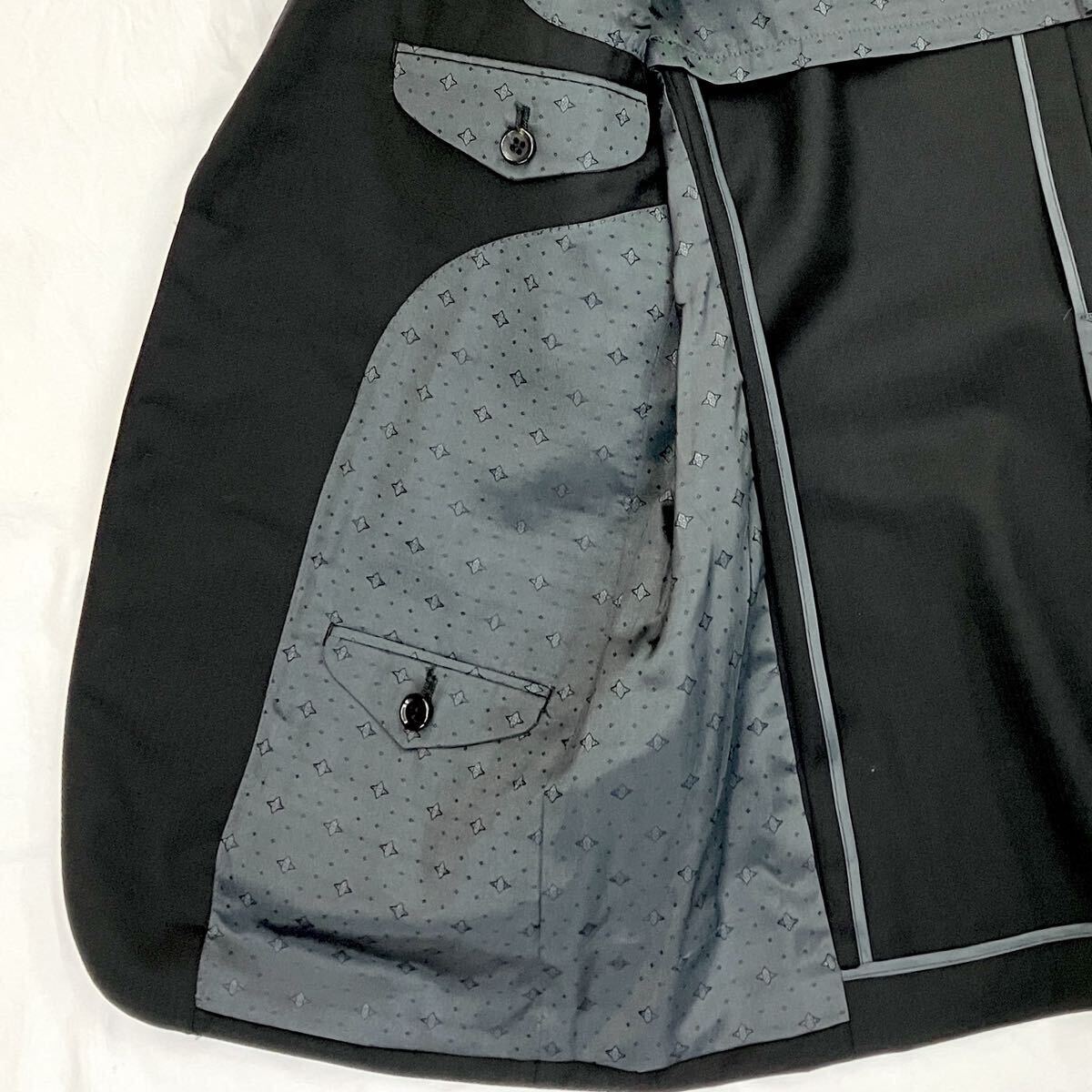 未使用 イージーオーダー 春夏 2つボタンスーツ ミユキ毛織 AB2くらい ウエスト84cm 袖丈51cm 日本製 背抜き ブラック メンズ 001901
