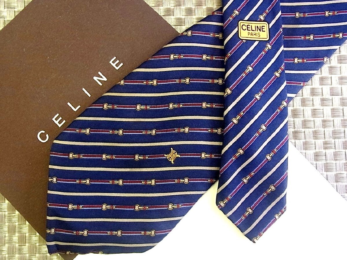 【在庫処分セール】●特売●FK9883W●セリーヌ【ベルト ストライプ ロゴ入 柄】ネクタイ●