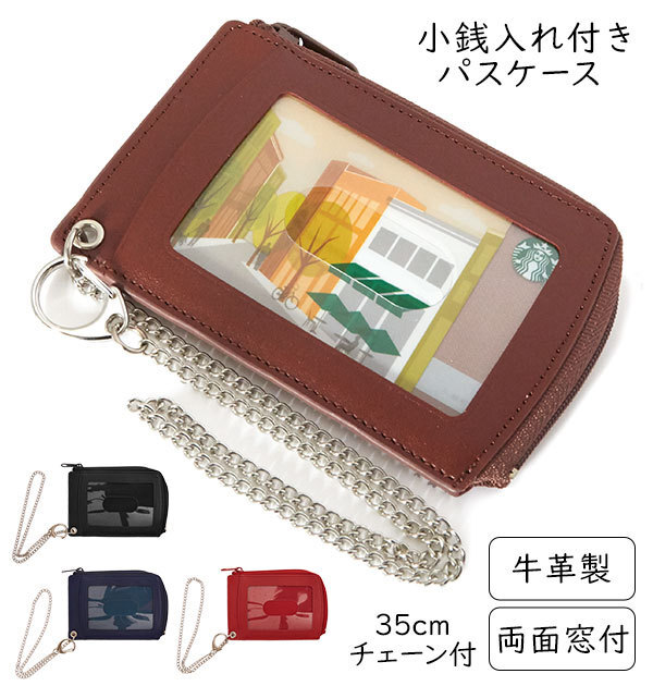 | 商品名 | 小銭入れ付き 牛革製 単パス パスケース チェーン付き |
