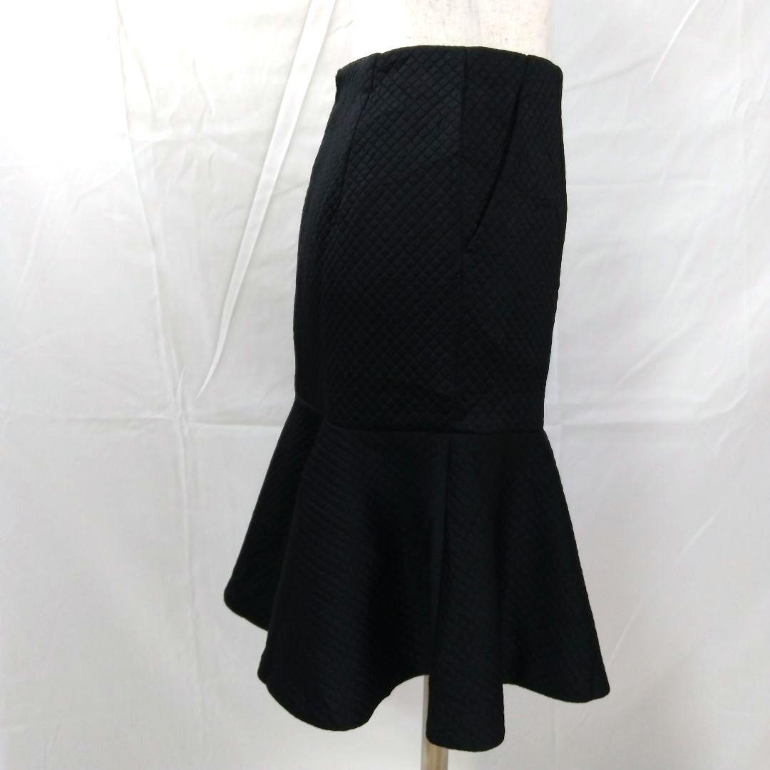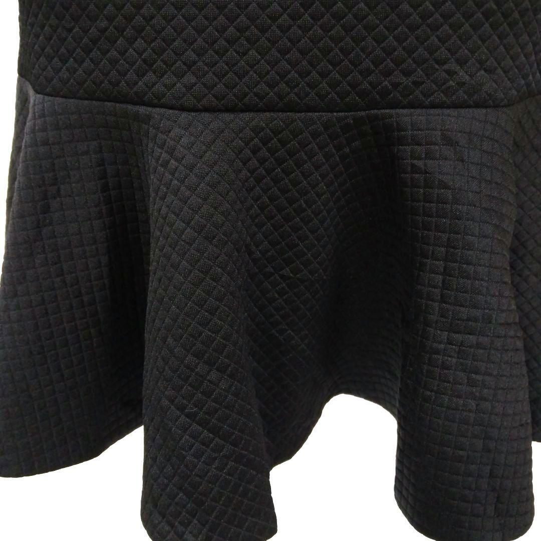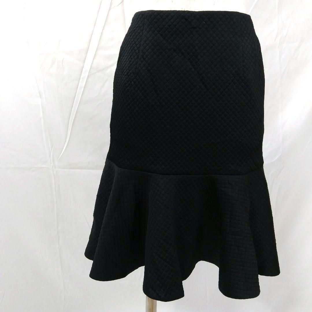 キルティングデザインのブラックフレアスカート。
