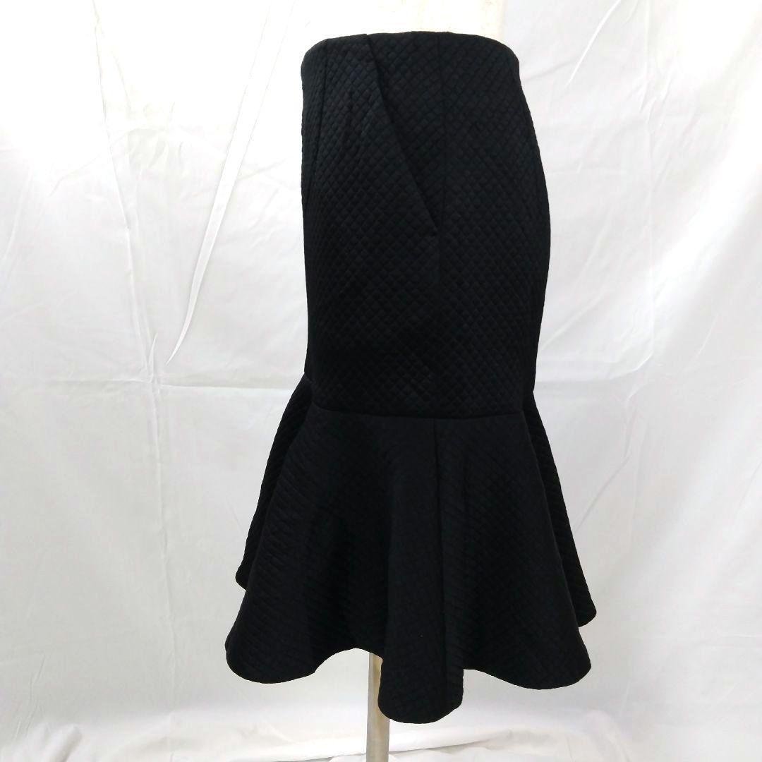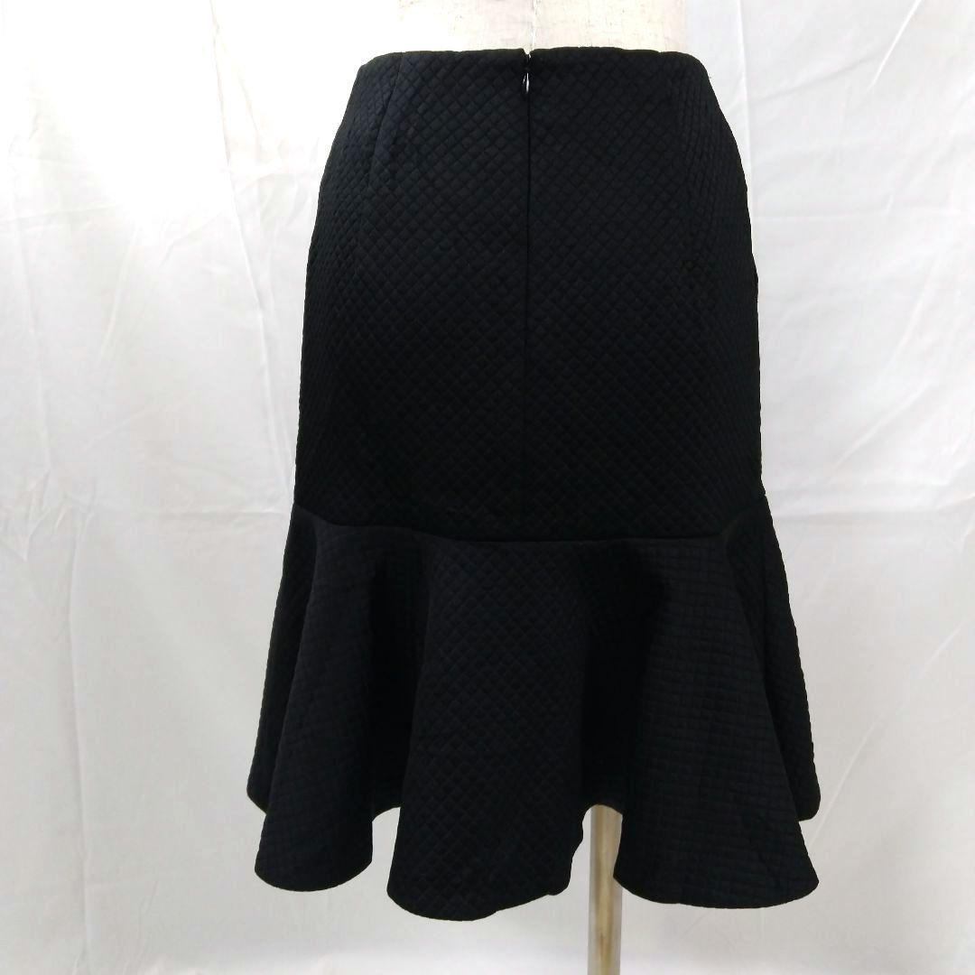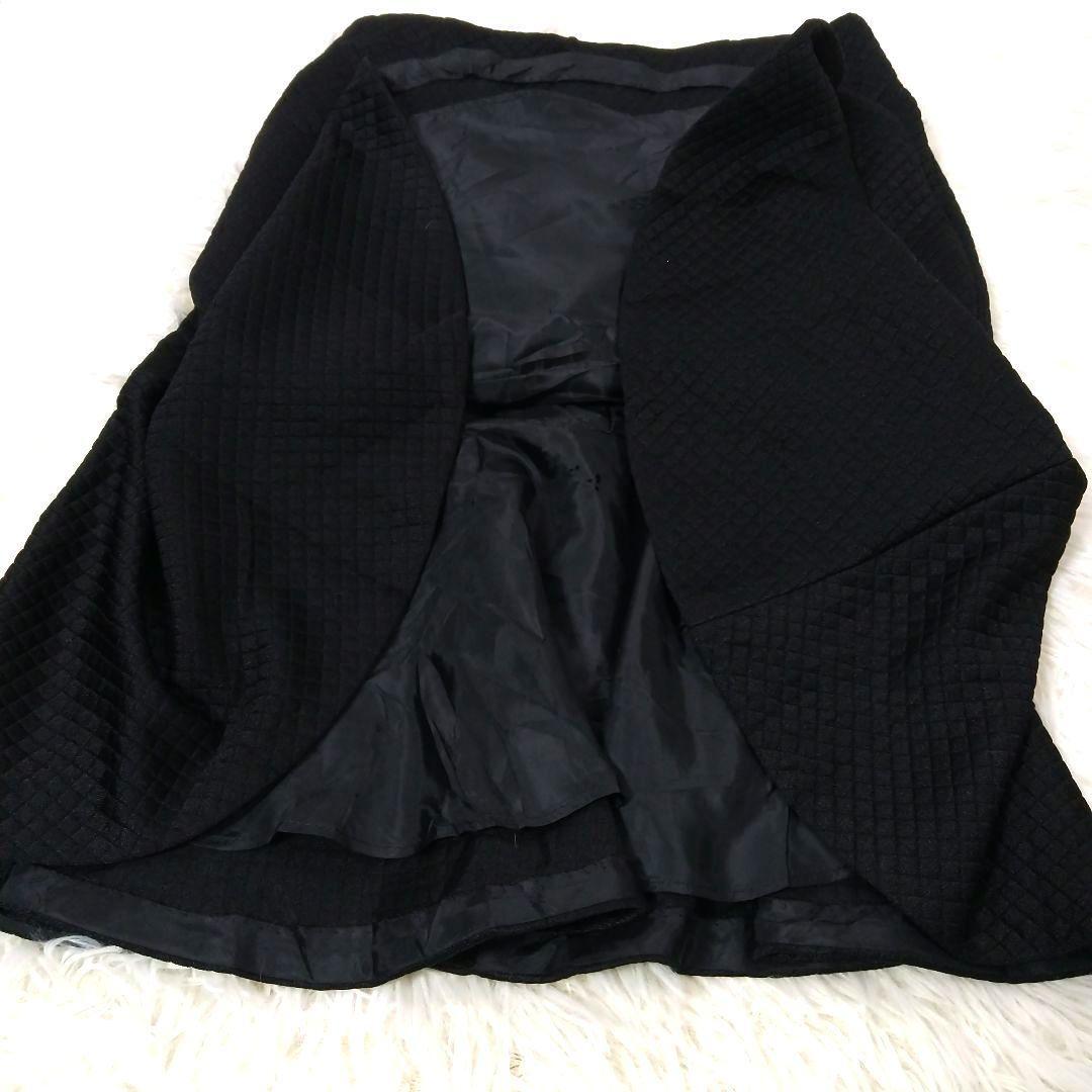 キルティングデザインのブラックフレアスカート。