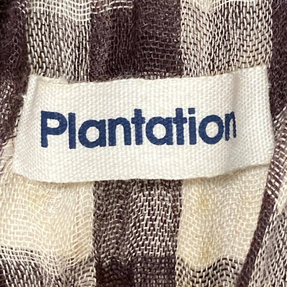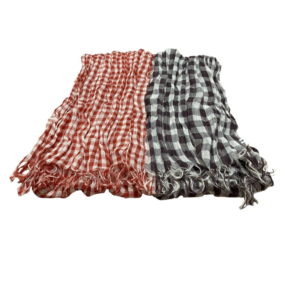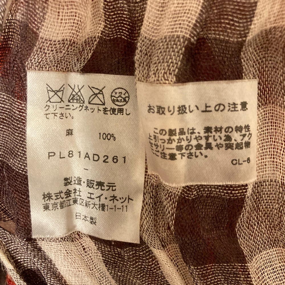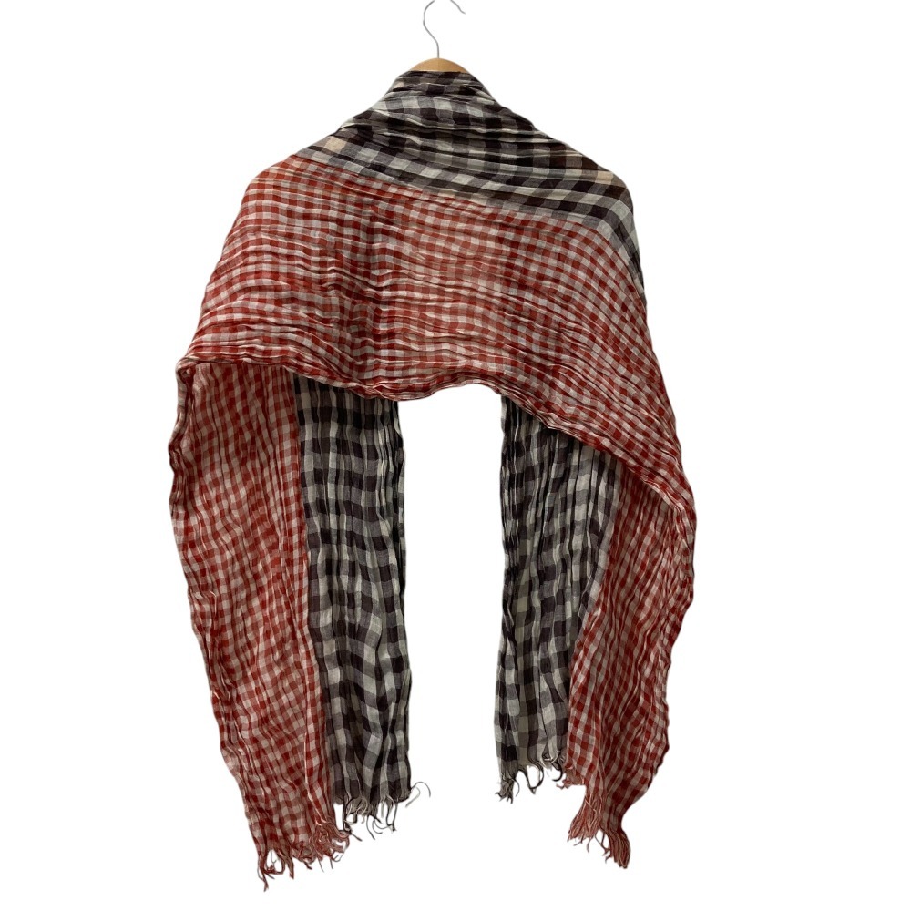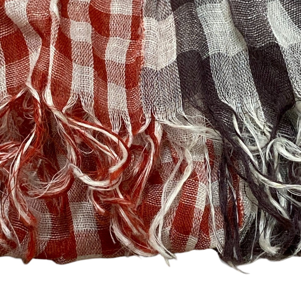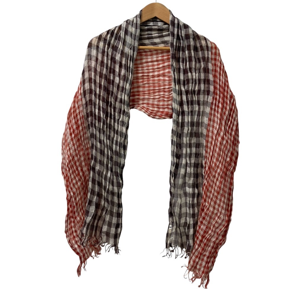 美品 Plantation プランテーション ギンガムチェック リネン100% フリンジ 大判 ストール マフラー レッド×ブラウン