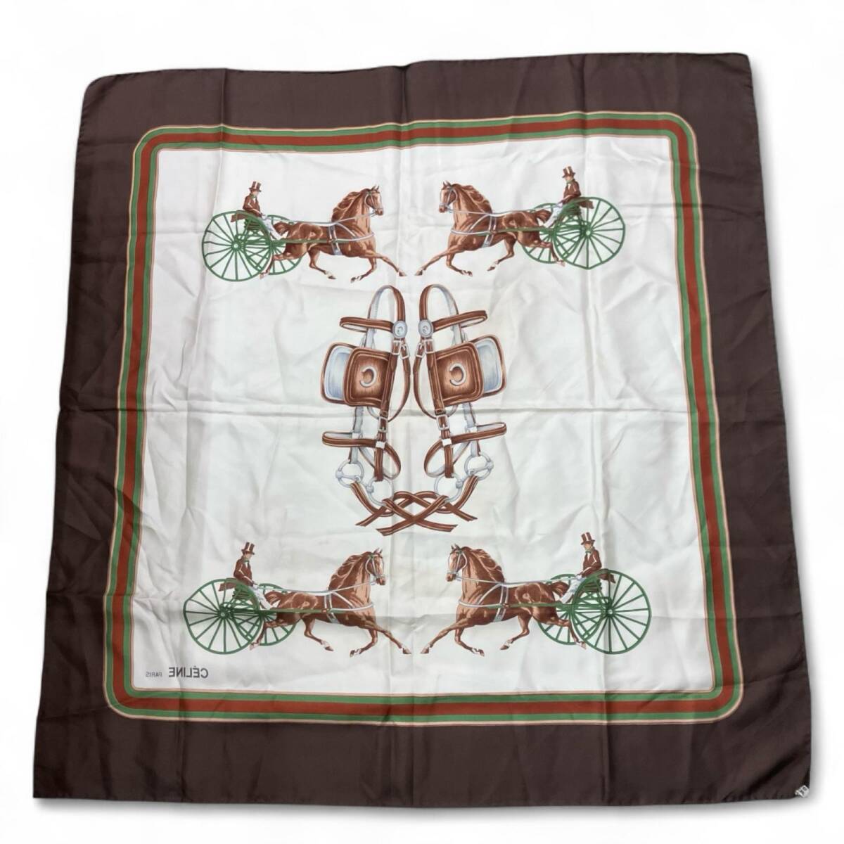 186000 CELINE セリーヌ スカーフ 馬と馬車 シルク