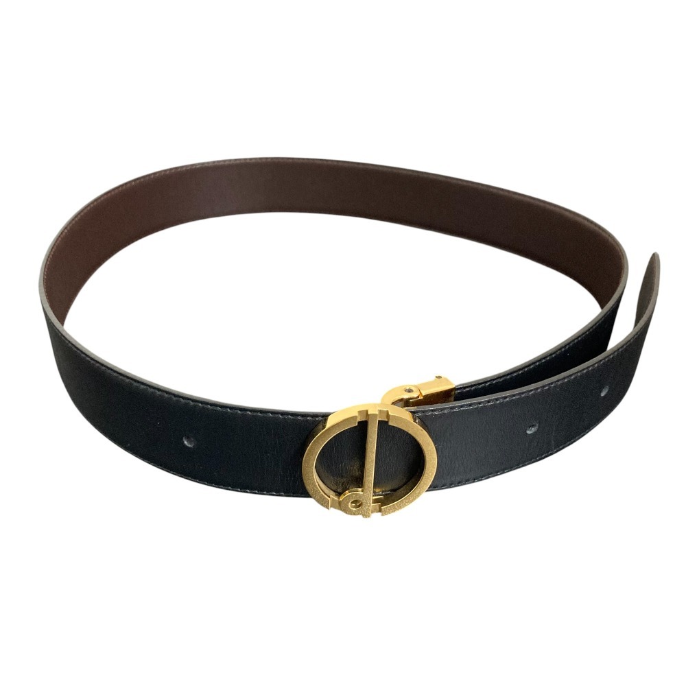 良品 dunhill ダンヒル ロゴバックル レザーベルト ブラック