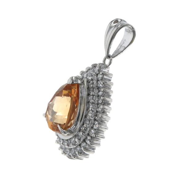 | 商品紹介 | 深みのあるオレンジカラーが魅力のインペリアルトパーズをあしらったプラチナトップです。 センターのトパーズを取り巻くように、ダイヤモンドが二重にセッティングされ、雫型のフォルムに立体感と華やかさを添えています。 |