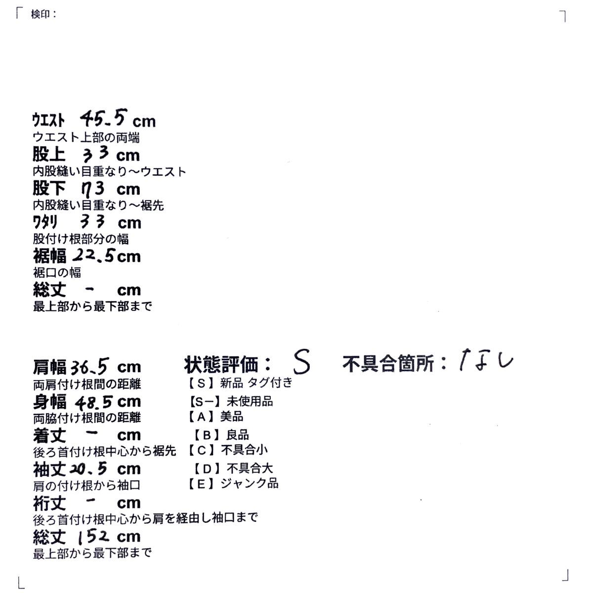 S-・・・未使用品