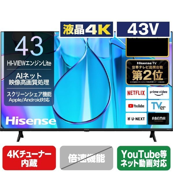 | 液晶テレビ43E6N [43V型 /Bluetooth対応 /4K対応 /BS・CS 4Kチューナー内蔵 /YouTube対応] |