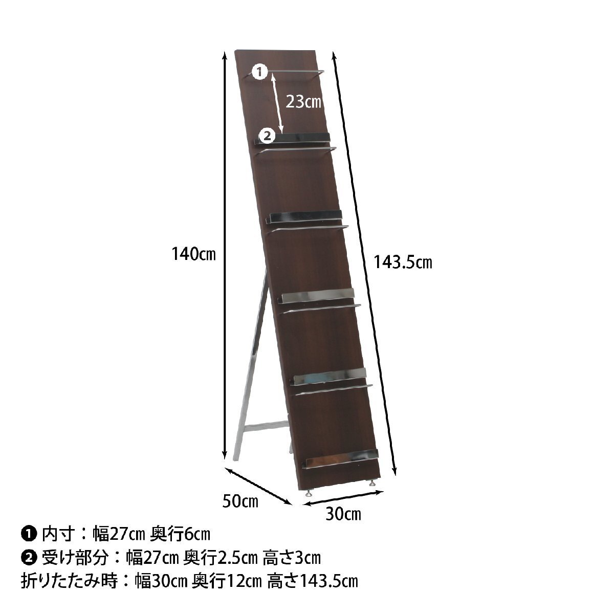| サイズ | 全体:幅300 × 奥行500 × 高さ1400mm 耐荷重(全体):5kg 折りたたみサイズ:300x120x1435mm 厚み2.5cmまで収納可能 ※サイズ詳細はサイズ画像をご参照ください。 |