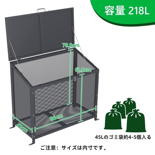 屋外ゴミ収納庫 メッシュデザイン ゴミ箱 屋外 ゴミ収集ボックス ごみ集積所 大容量 カラスよけ 野良猫対策 ゴミ荒らし防止 庭用可能 218L
