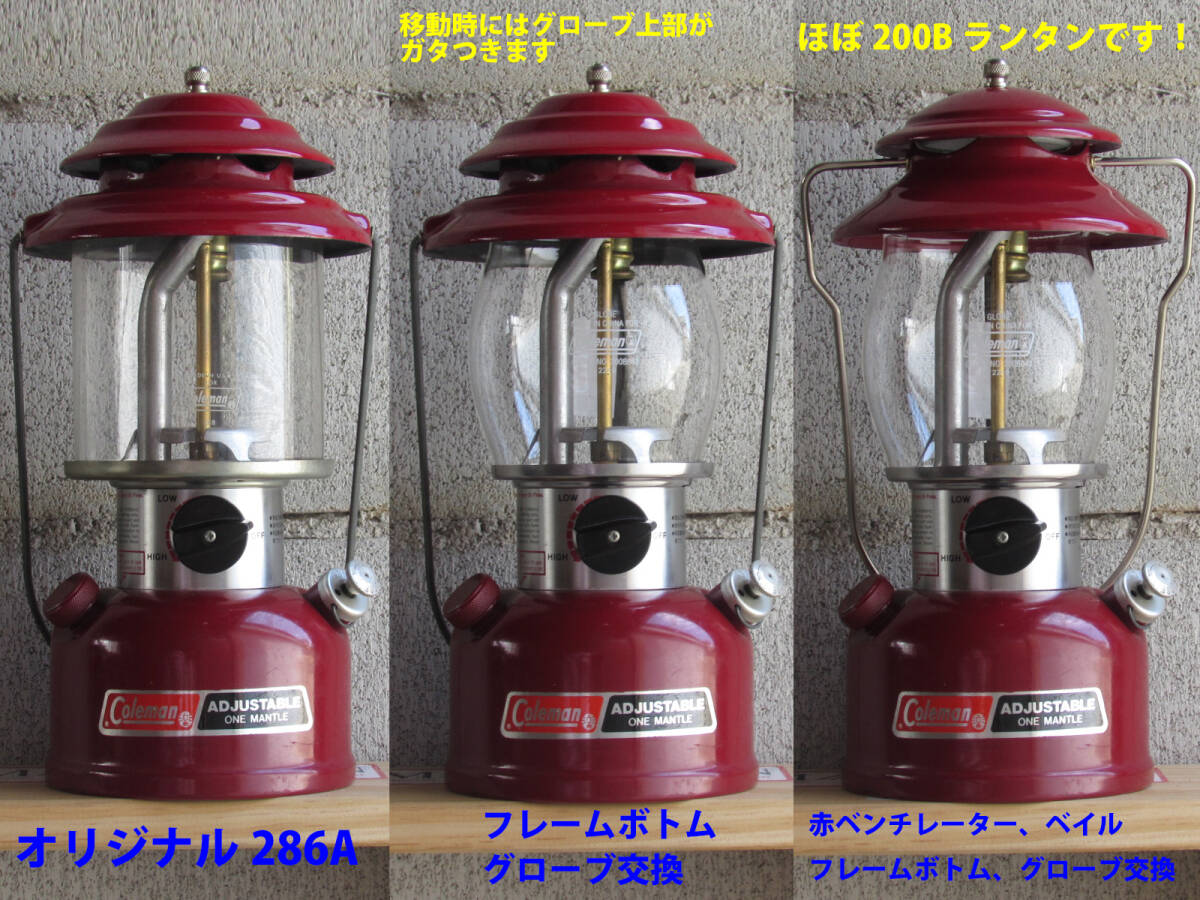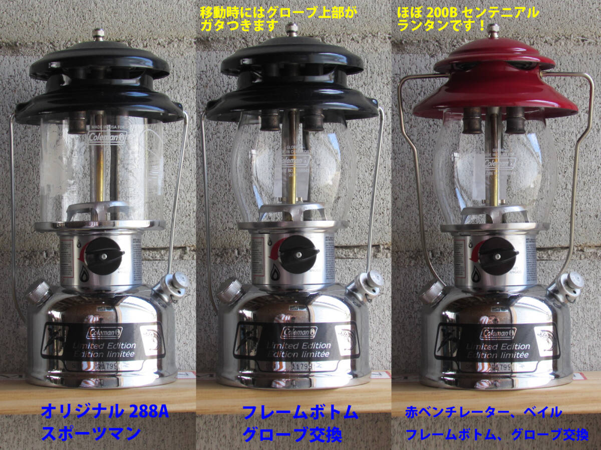 ストレートグローブが装着されている 286Aランタン、288Aランタン、282ランタン、285ランタン、214A~214Cケロシンランタンを