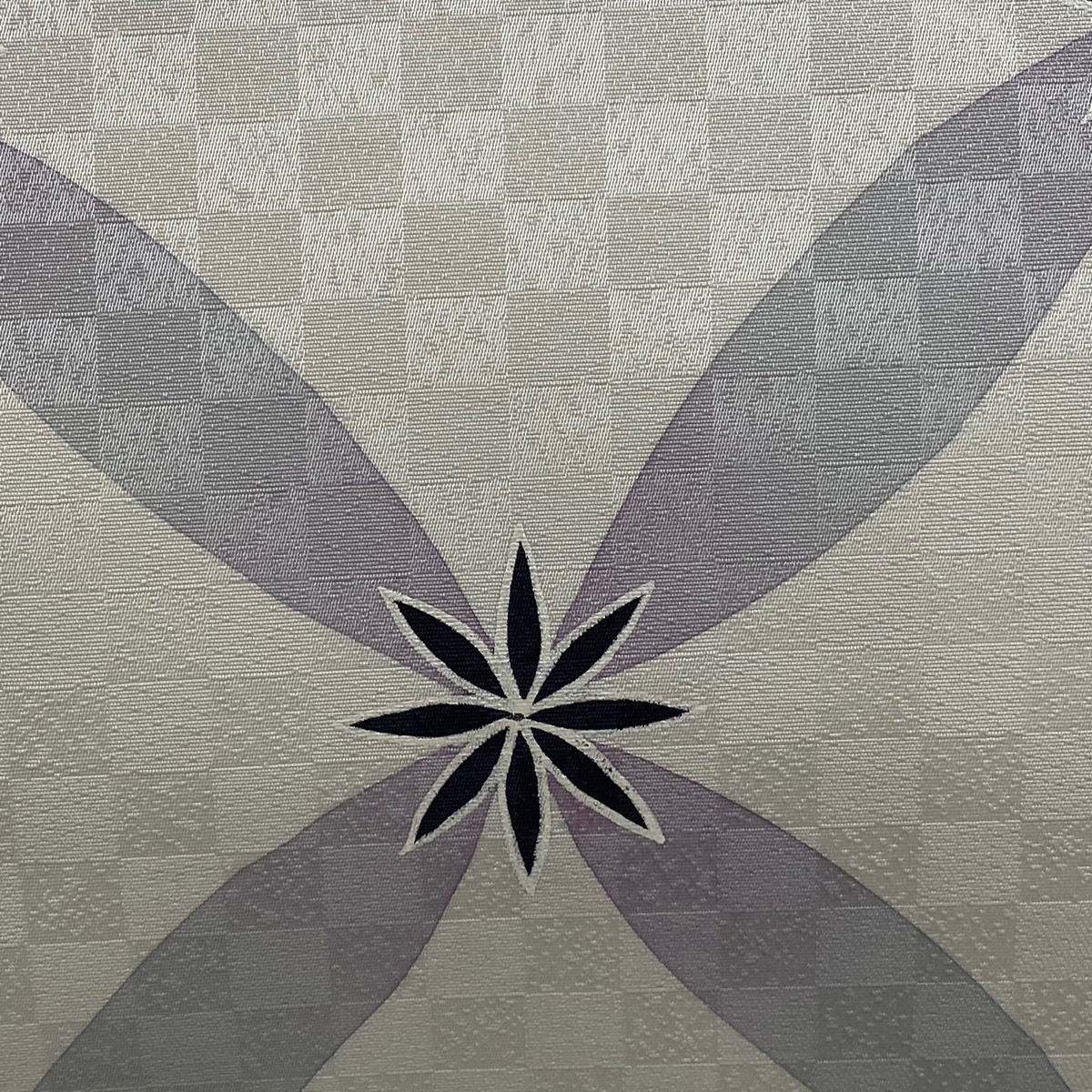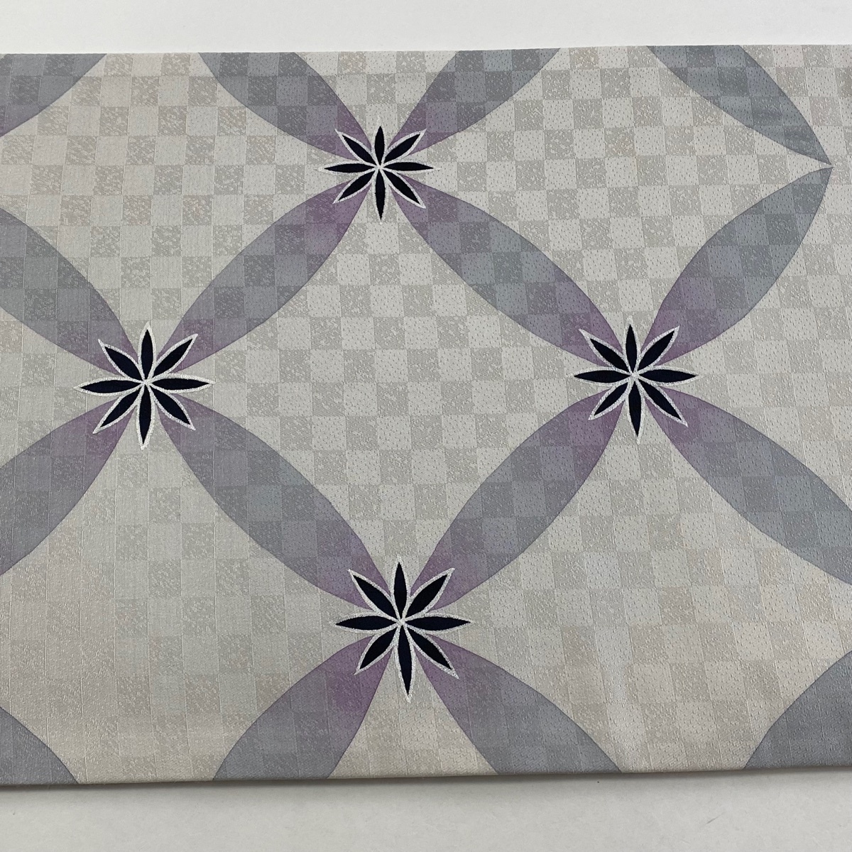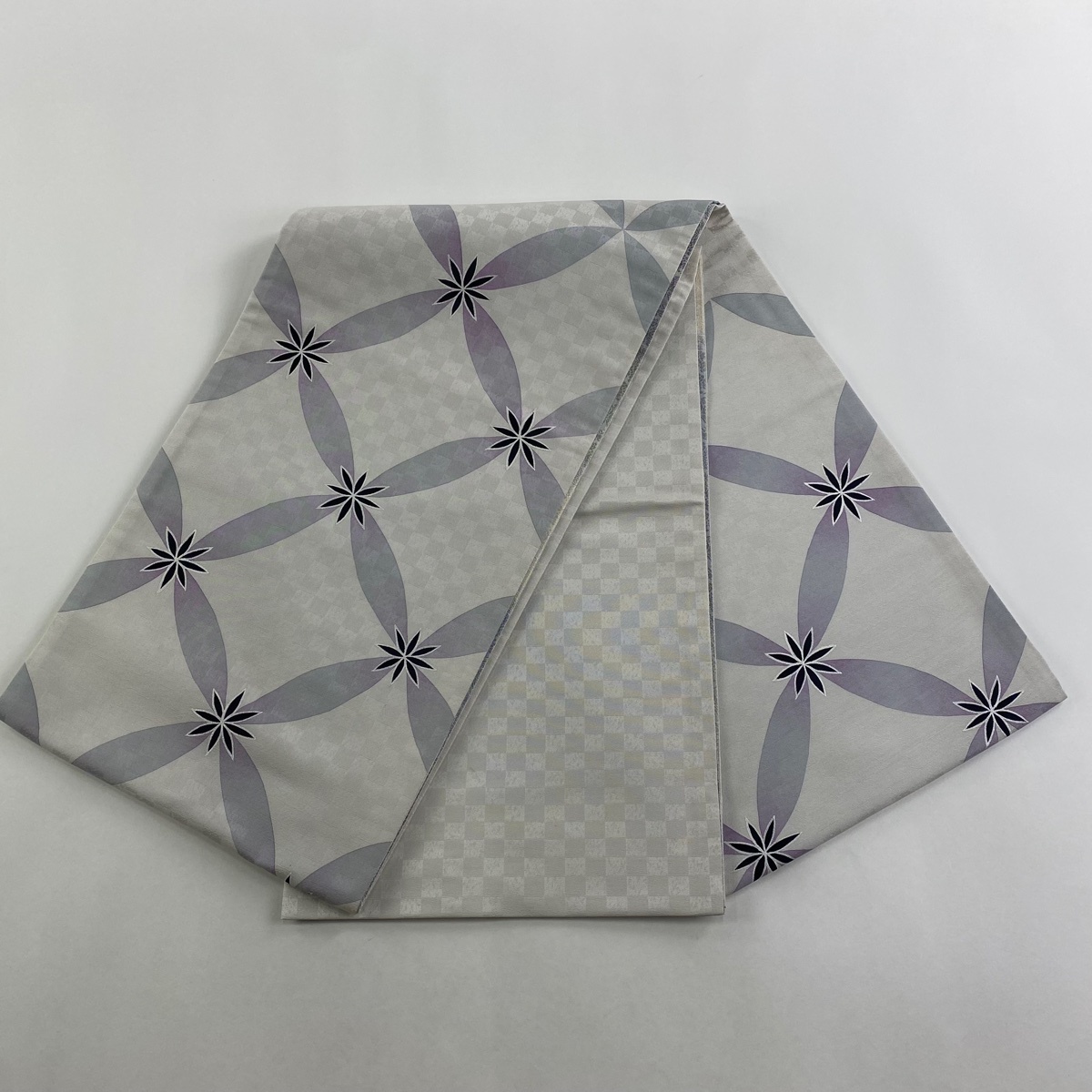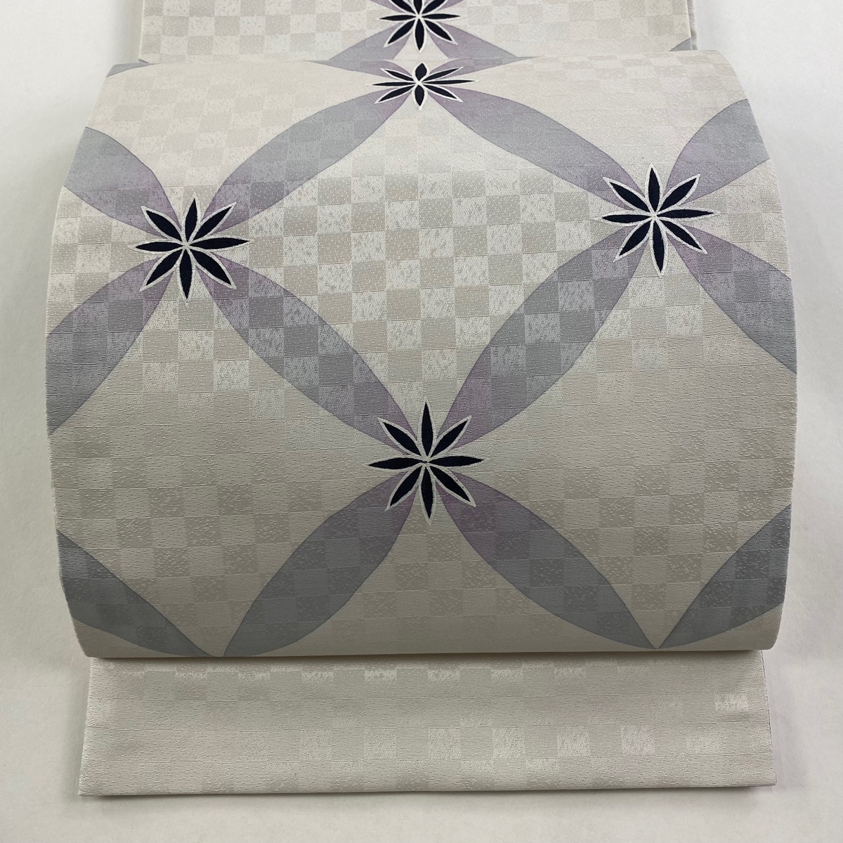 | 袋帯 美品 名品 七宝 花 銀彩 灰白 お太鼓柄 正絹 【中古】 |