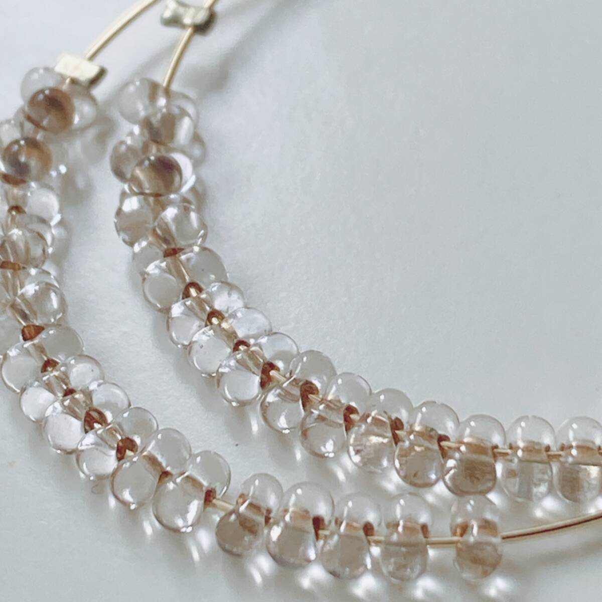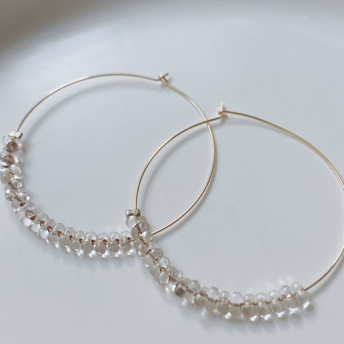 フープピアス チェコビーズ クリスタル ゴールドトーン 未使用品☆vintage jewelry accessories F0150