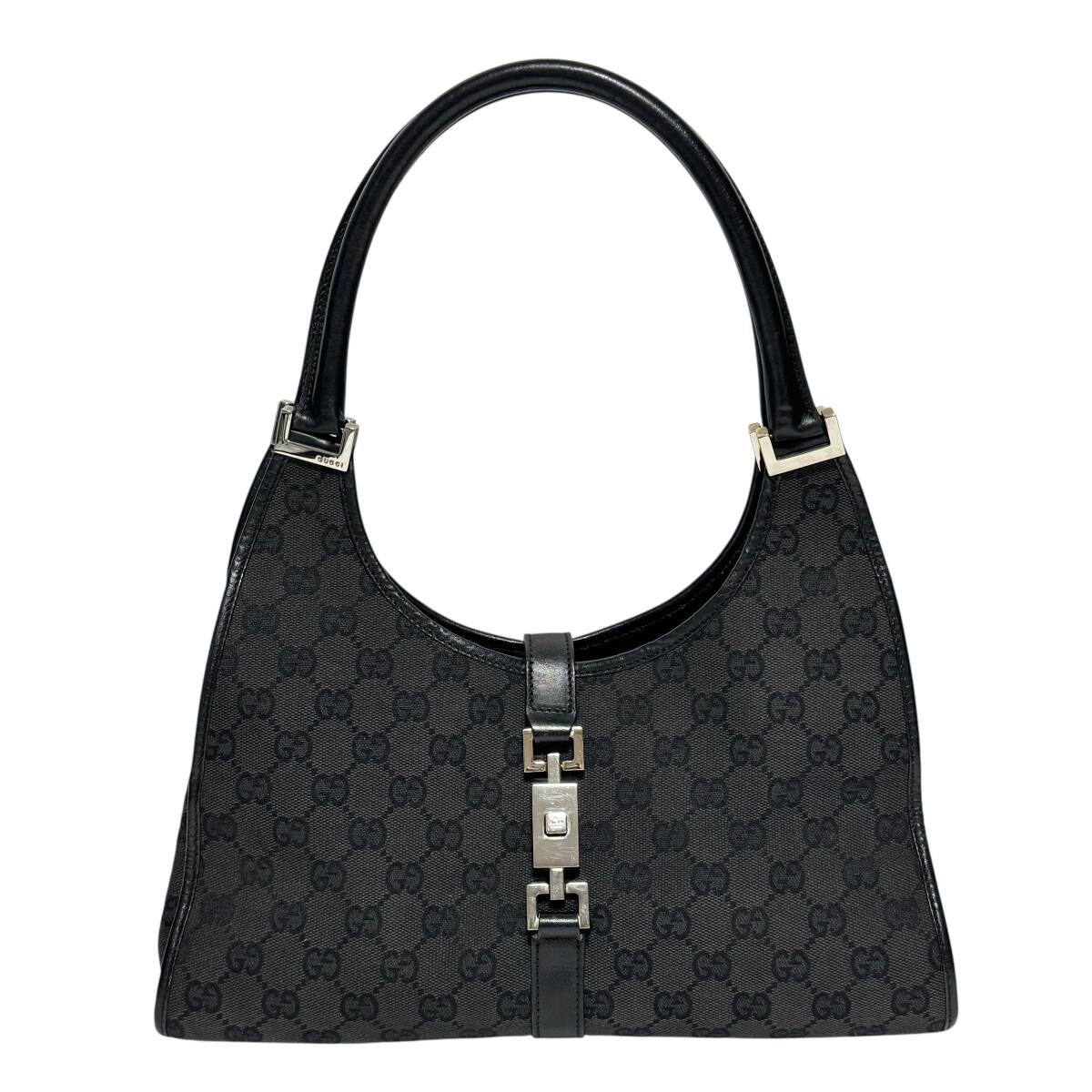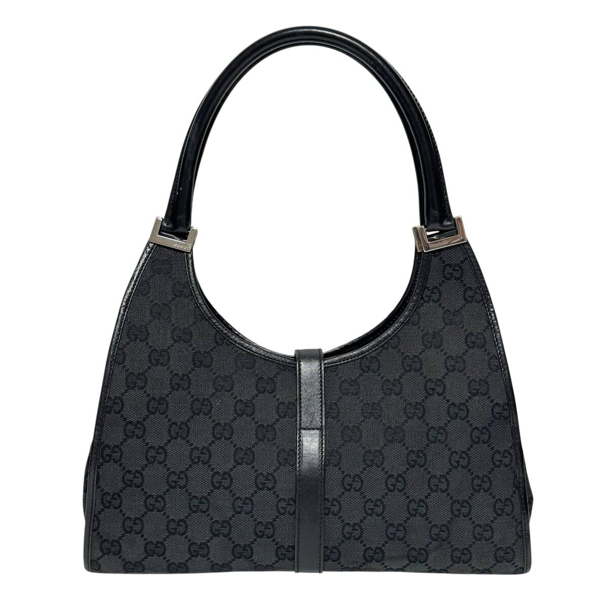 This iconic Gucci Vintage Jackie bag showcases the house’s signature GG monogram canvas in an elegant and versatile black-on-black colorway, perfect for both day and evening wear. The structured silhouette, accented with a sleek leather trim and a distinctive piston lock closure, embodies the timeless sophistication that the Jackie line is known for. The medium-sized body provides enough room for essentials, making it ideal for daily use without compromising style. A classic collector’s piece that merges heritage and practicality in one elegant design.