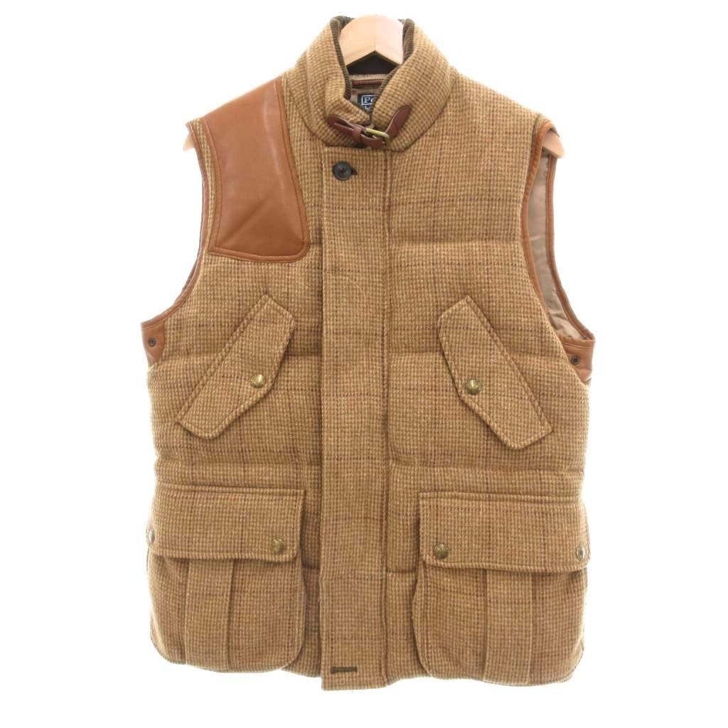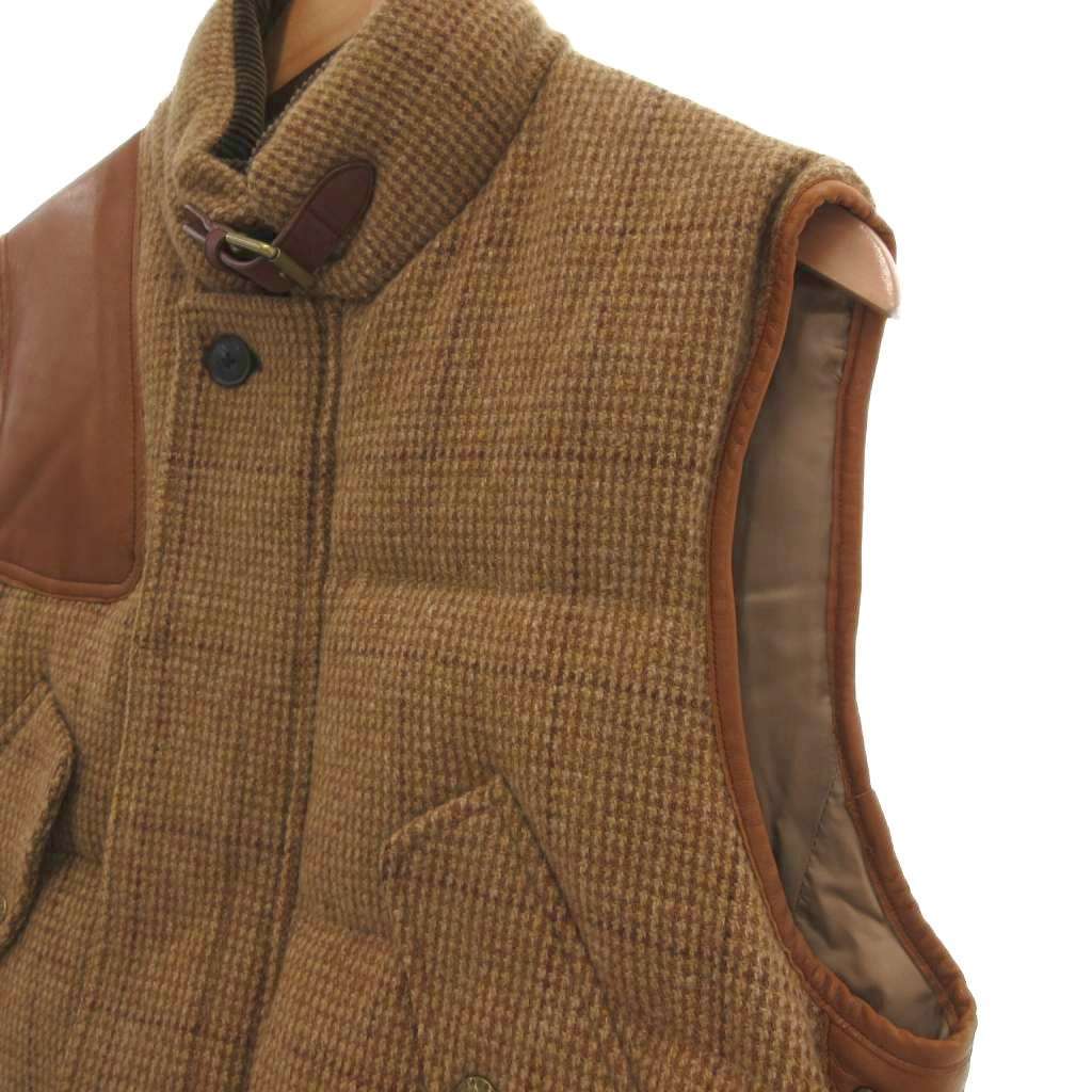 ポロ バイ ラルフローレン Polo by Ralph Lauren 90s ヴィンテージ ダウンベスト ツイード レザー切替 M 茶系 ■GY17 ☆AA★ メンズ