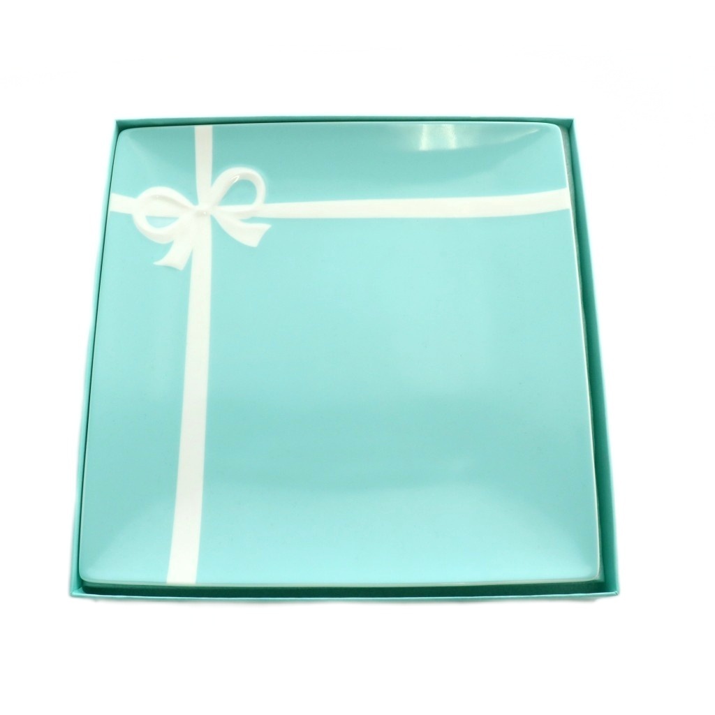 ティファニー TIFFANY & CO. ブルーボックス プレート 皿 正方形 リボン ティファニーブルー 白 ホワイト /MP ■GY19 その他