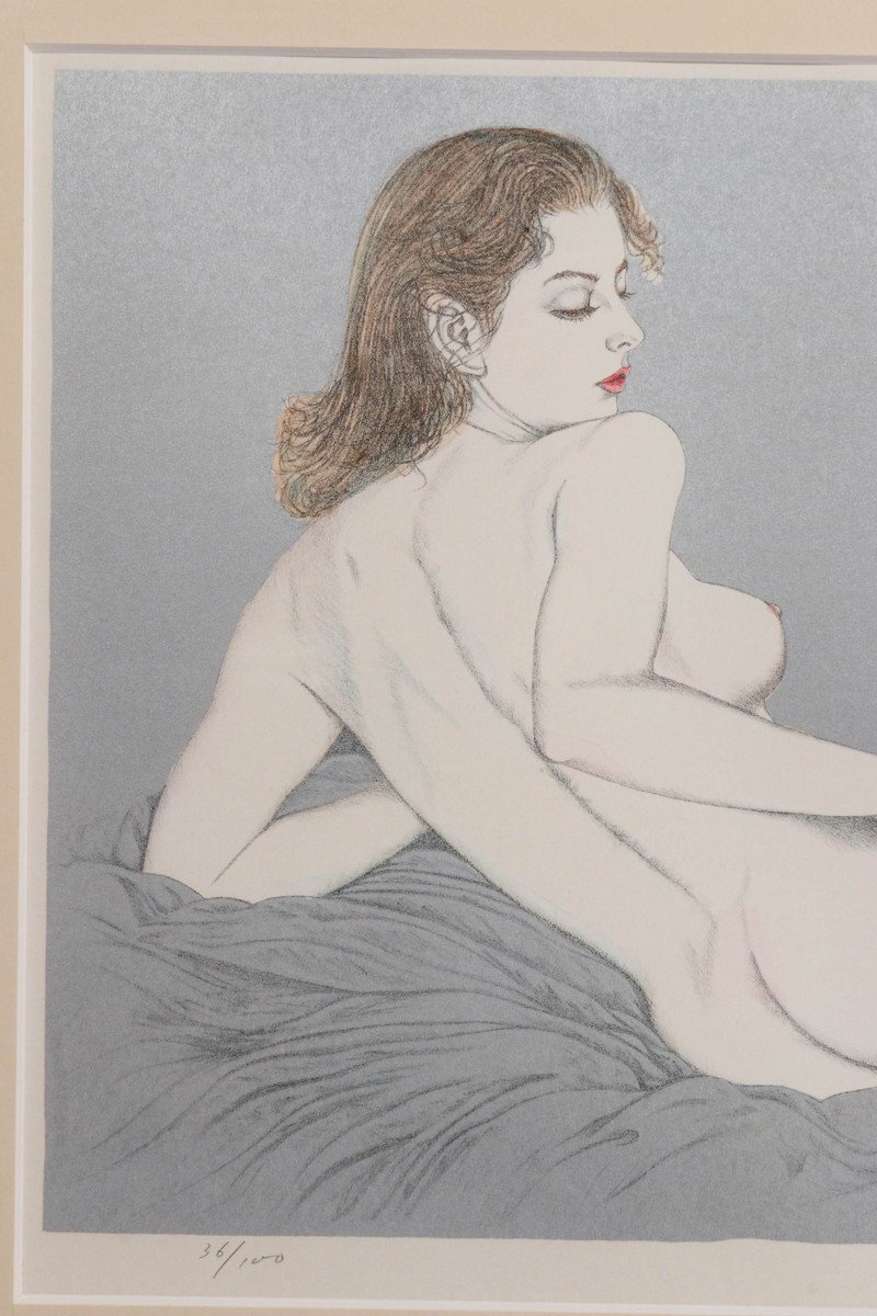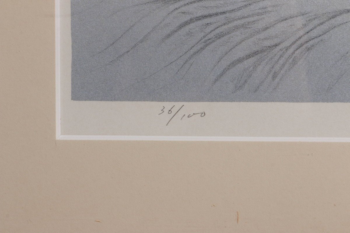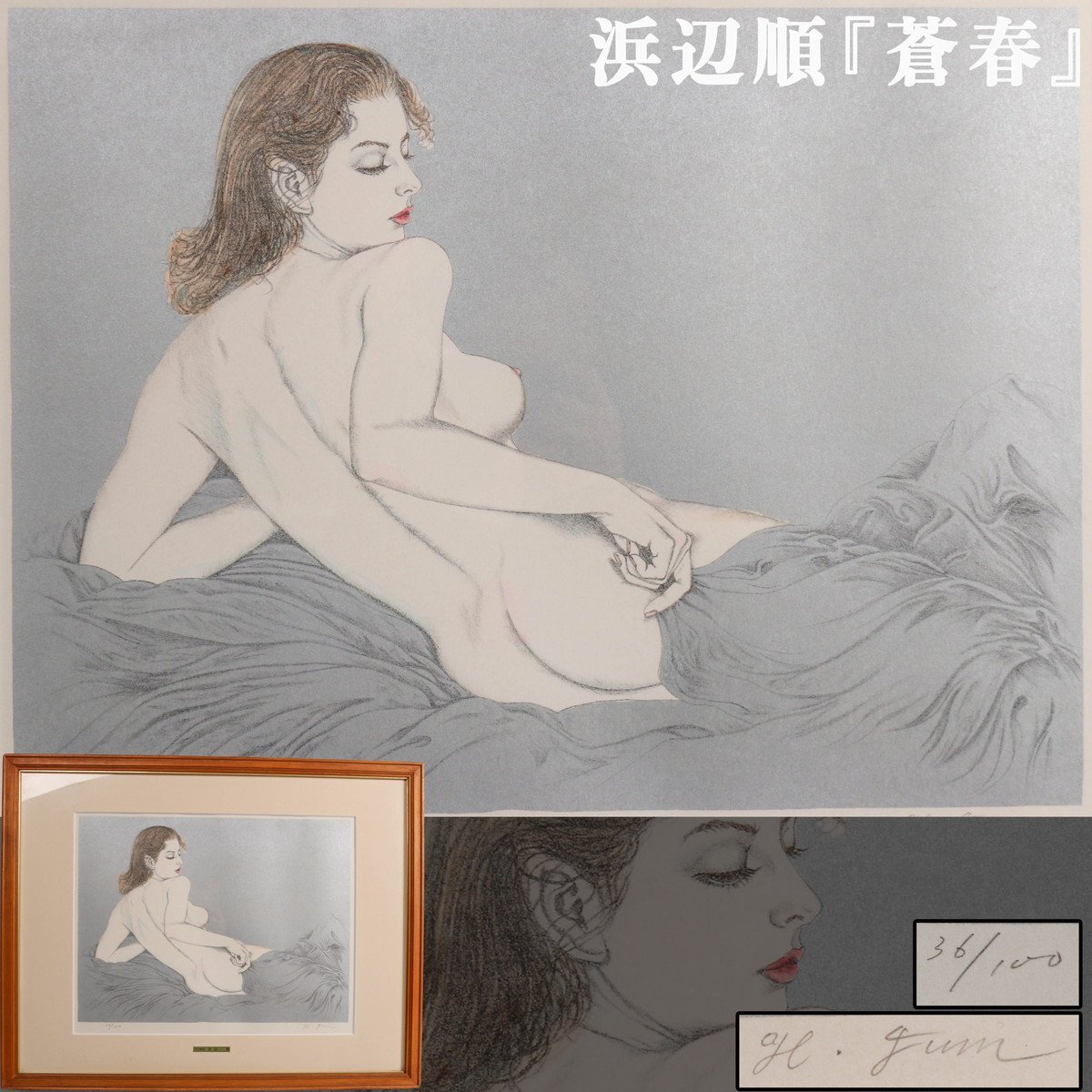 【SAG】浜辺順 『蒼春』リトグラフ 手彩色 直筆サイン 36/100 額装 共シール 本物保証