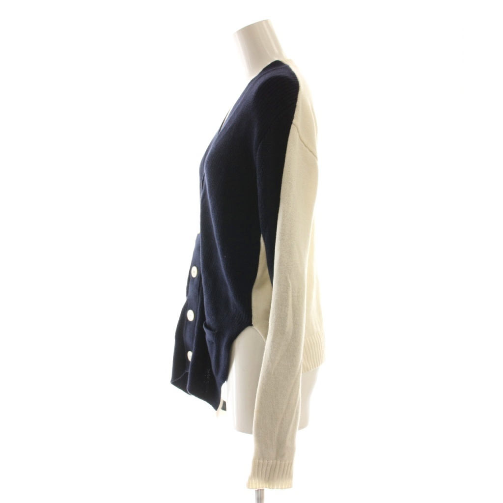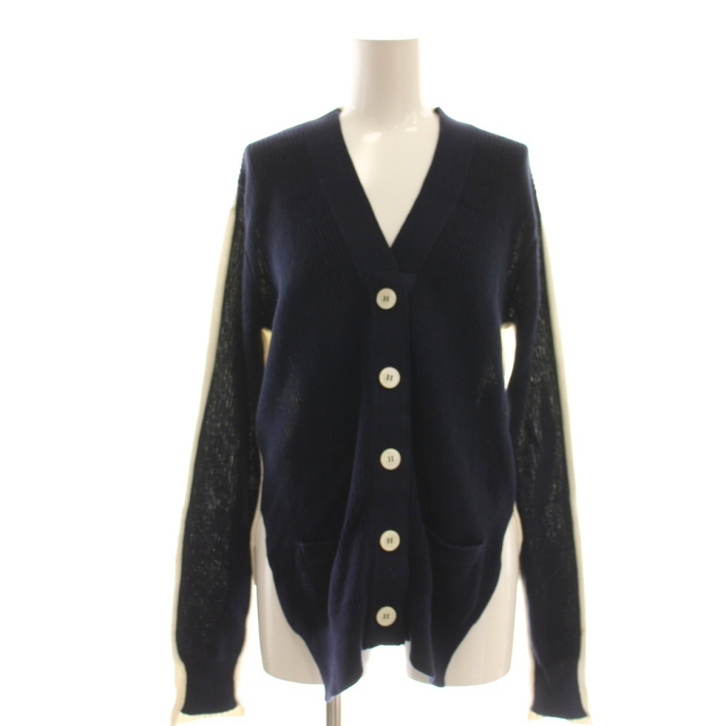 サカイラック sacai luck バイカラーニットカーディガン 長袖 Vネック 2 紺 ネイビー 白 ホワイト /AT ■OS レディース