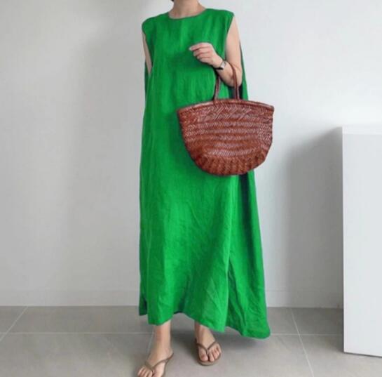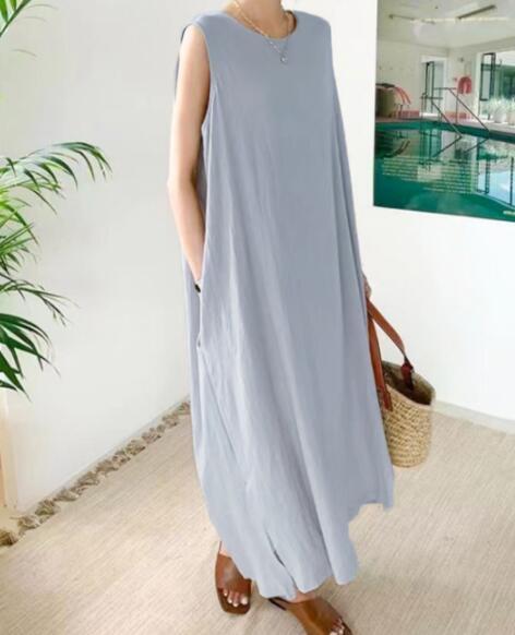 新入荷ひんやりノースリーブワンピースロングワンピースワンピースマキシワンピース レディース大きいサイズ体型カバー袖なし お色選択可