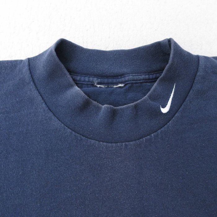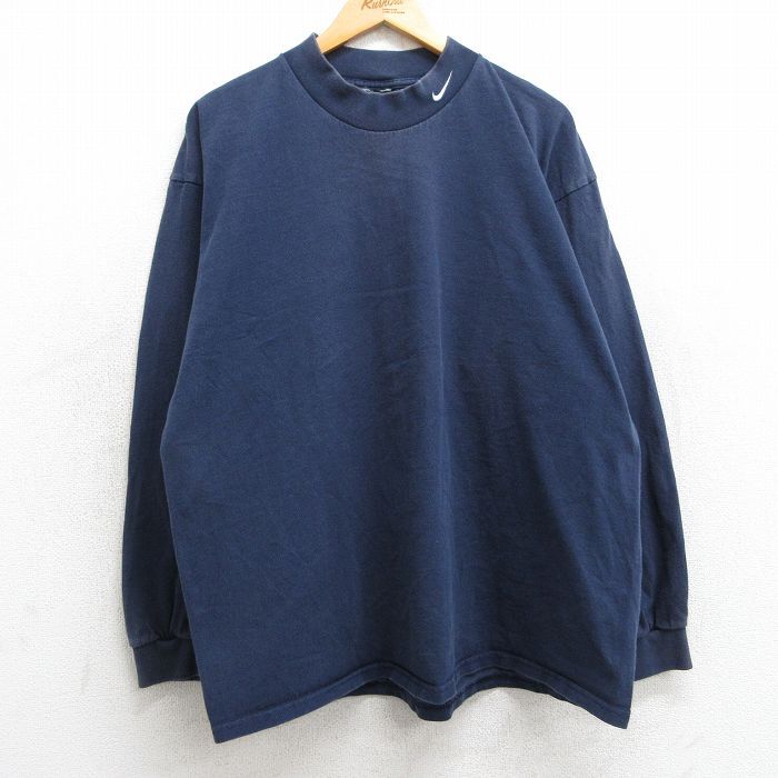 【商品名】 XL★古着 ナイキ NIKE 長袖 ビンテージ Tシャツ メンズ 00年代 00s ワンポイントロゴ 大きいサイズ モックネック ハイネック 紺