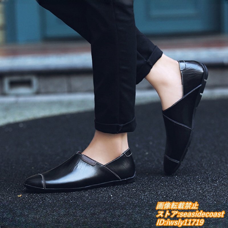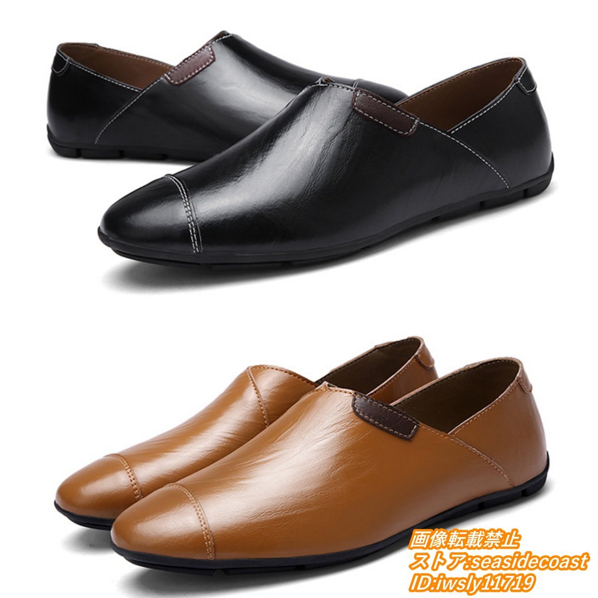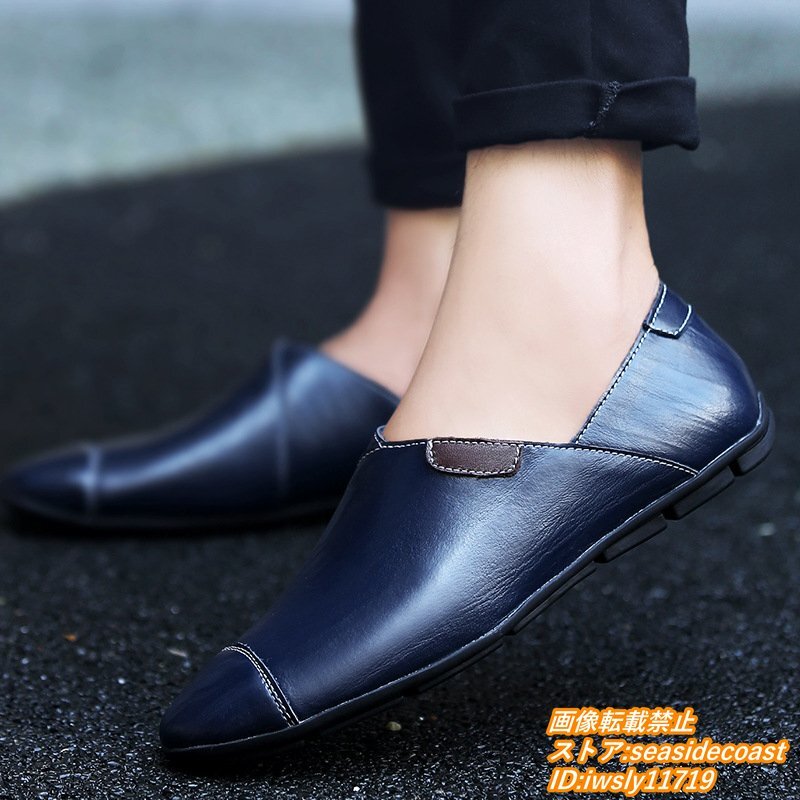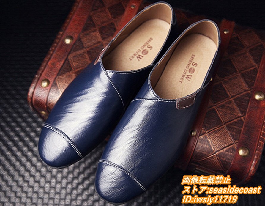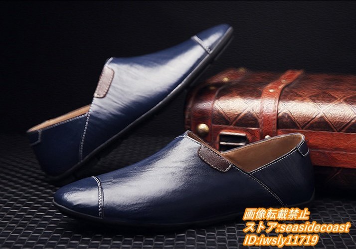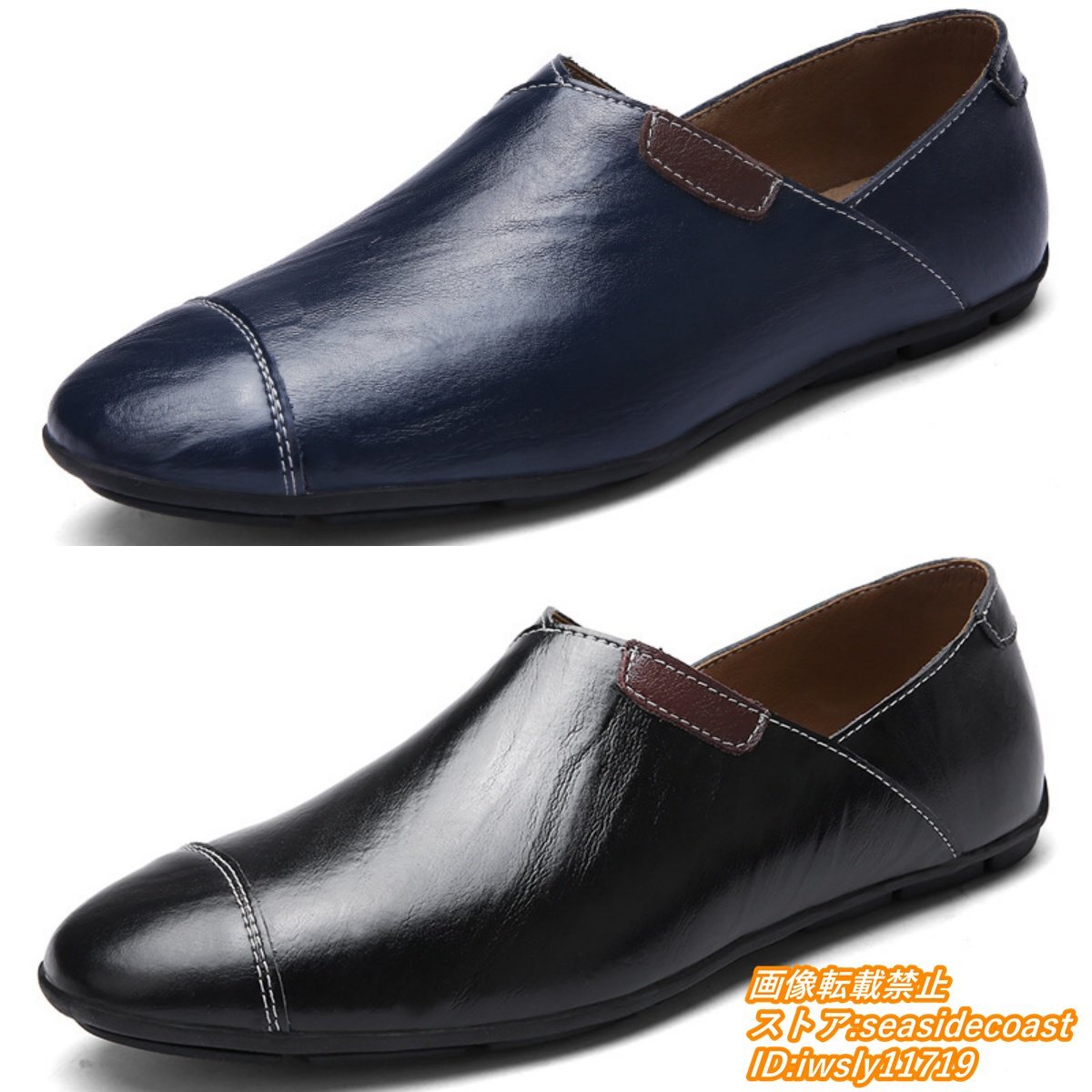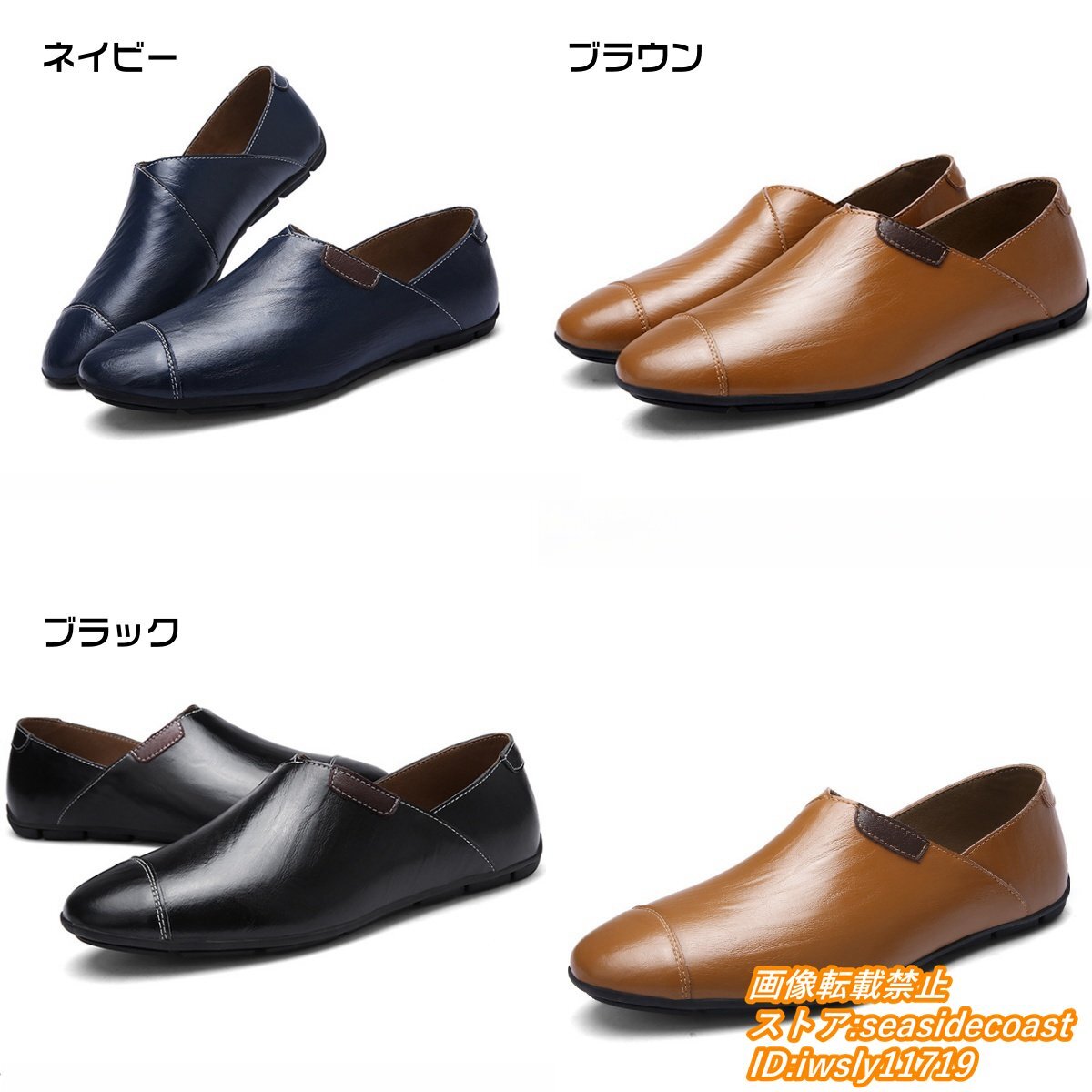 新品特売◆メンズ ローファー スリッポン 本革 レザーシューズ 牛革 ドライビングシューズ 通気性シンプル イギリス風三色 ネイビー 27.0cm