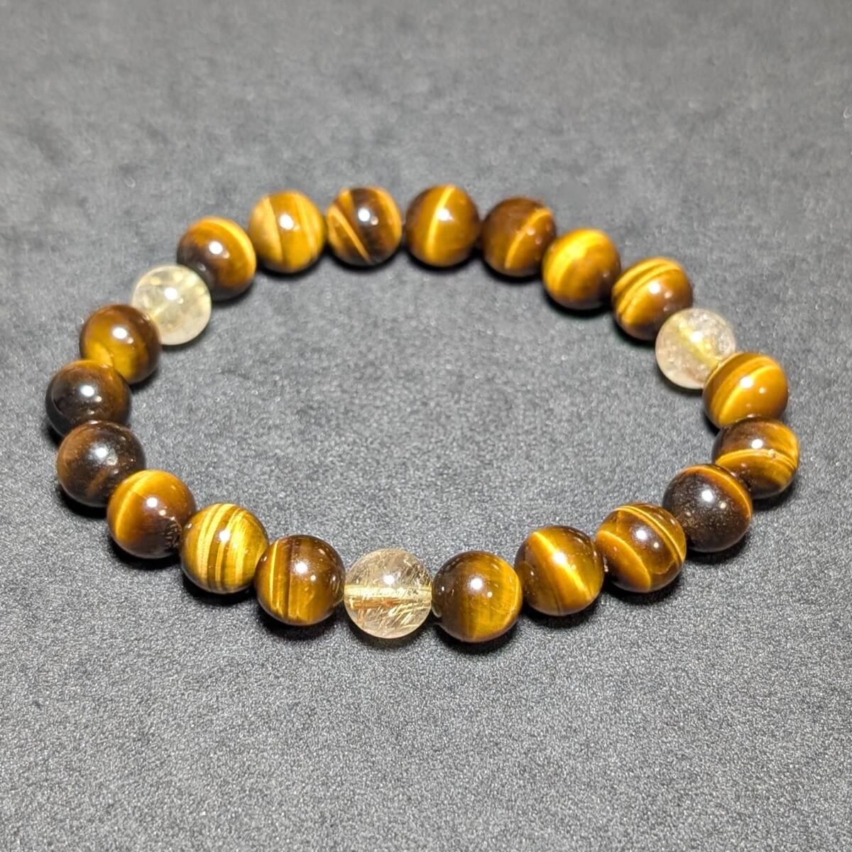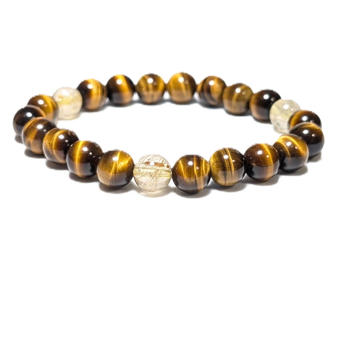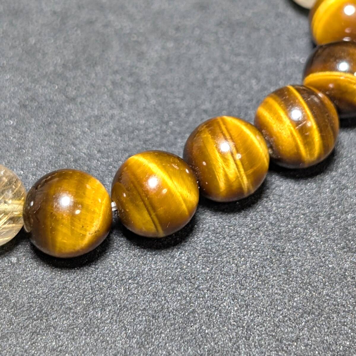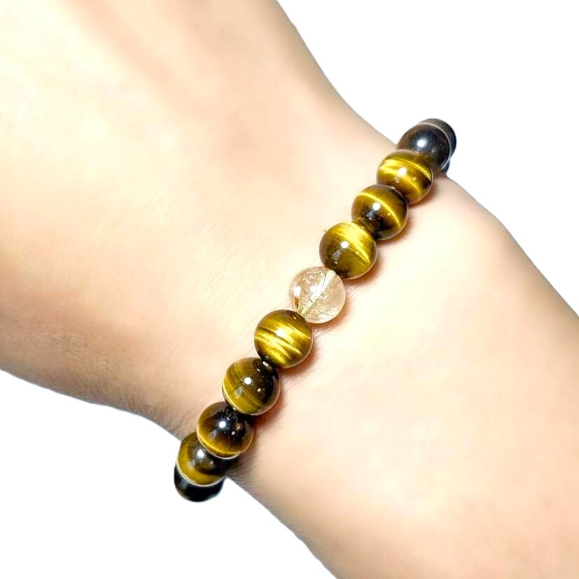 8mm 天然石 ブレスレット ゴールド タイチンルチル タイガーアイ 金運 仕事運UPに パワーストーン 数珠 お守り効果 ギフト プレゼント