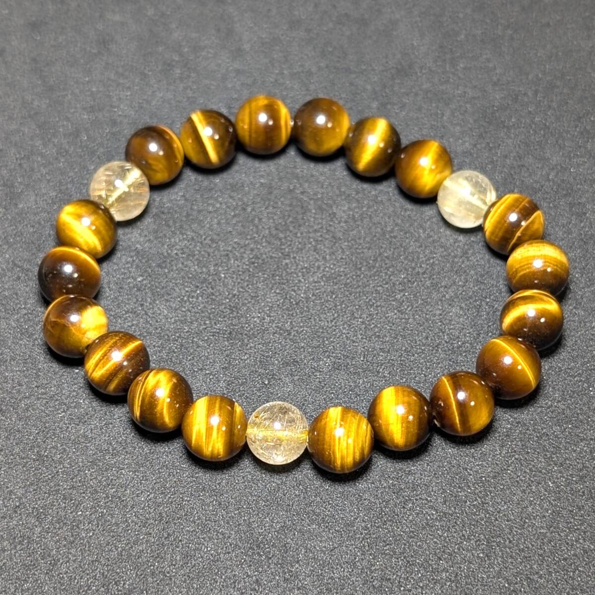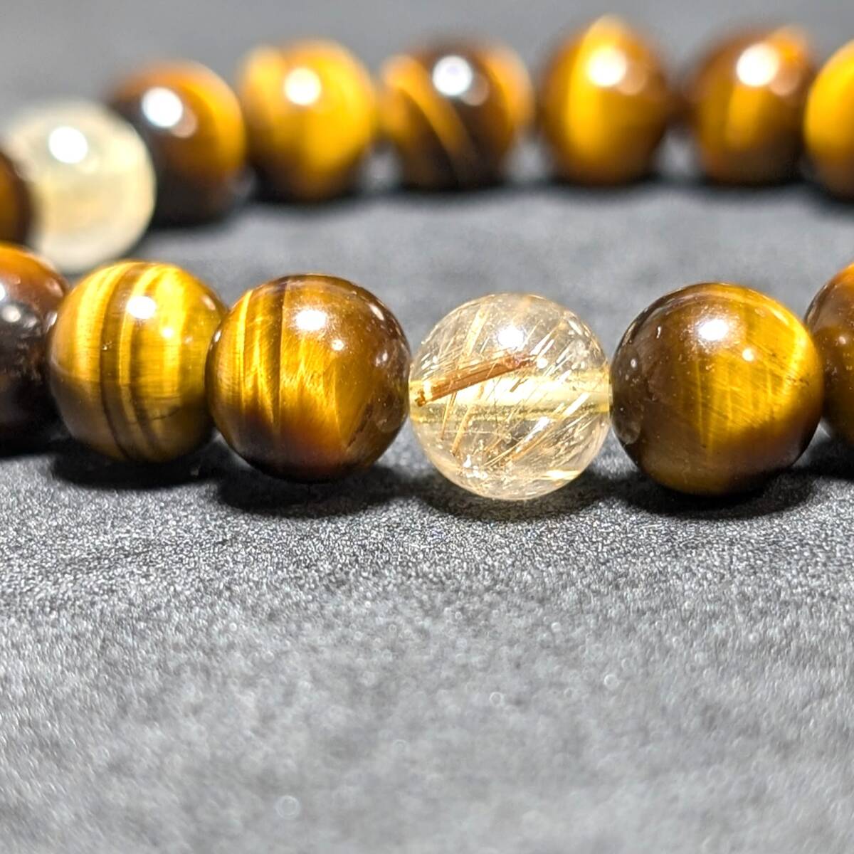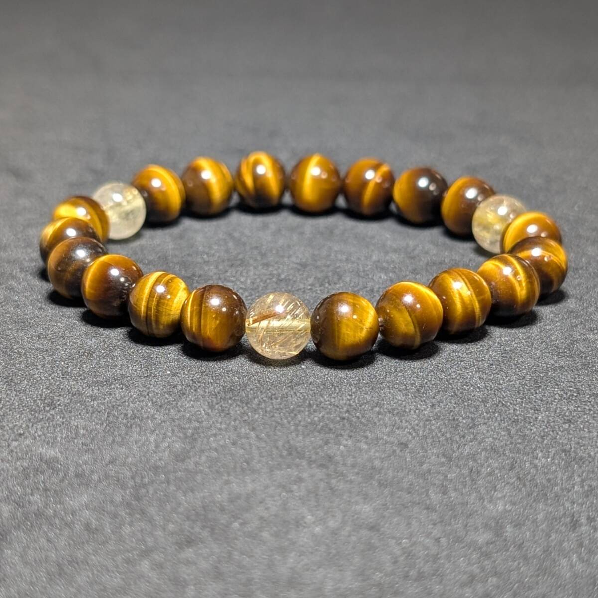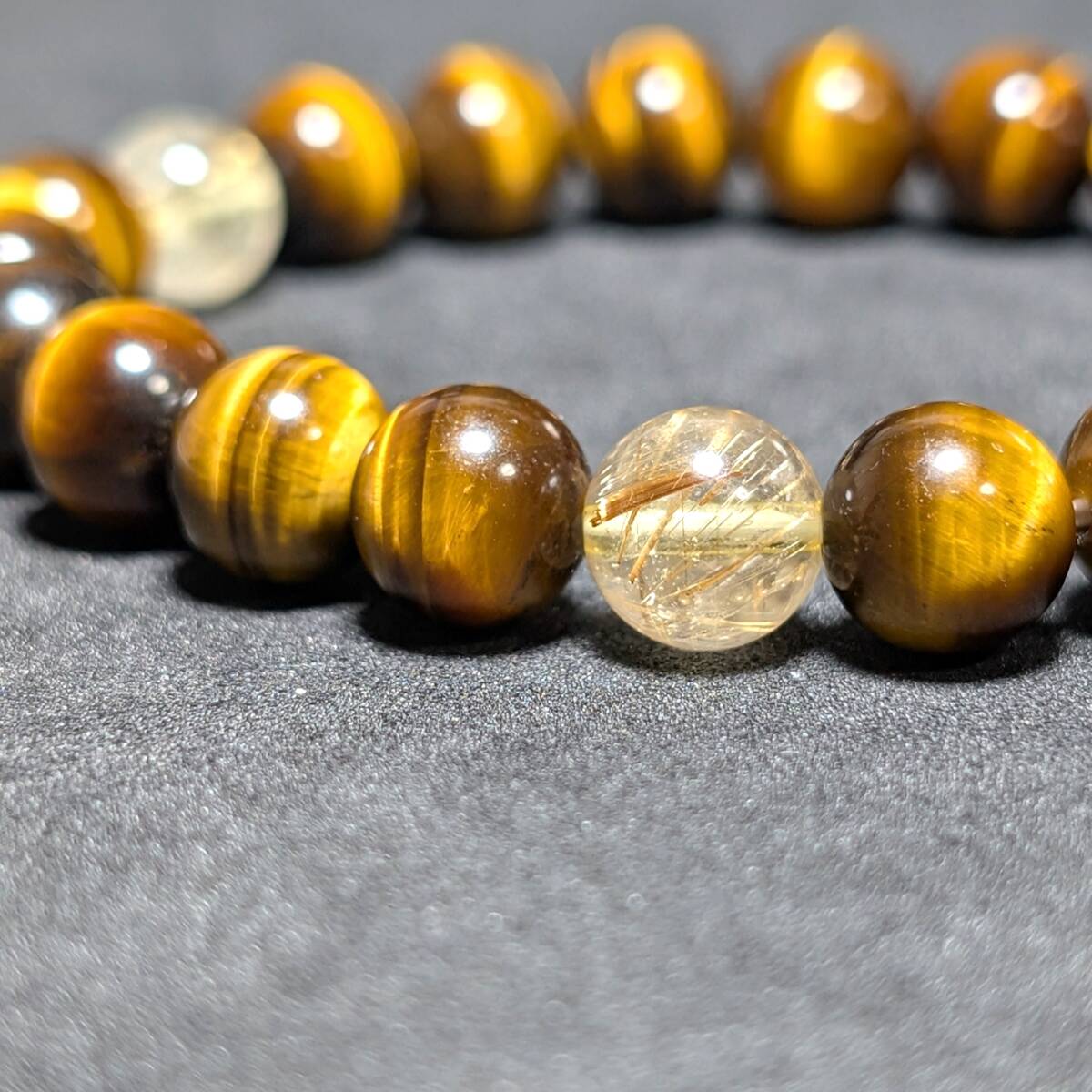 8mm 天然石 ブレスレット ゴールド タイチンルチル タイガーアイ 金運 仕事運UPに パワーストーン 数珠 お守り効果 ギフト プレゼント