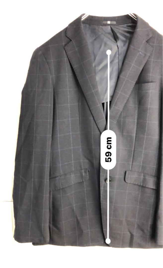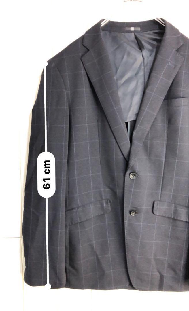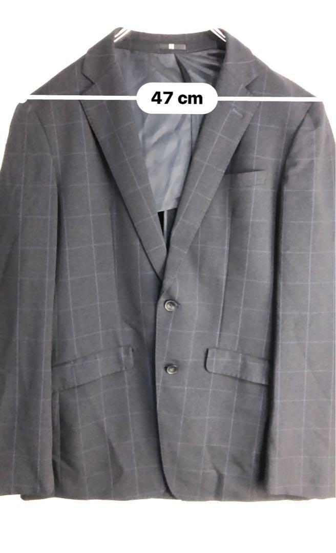 シンプルなチェック柄のテーラードジャケット、肩幅47cm、着丈59cm。