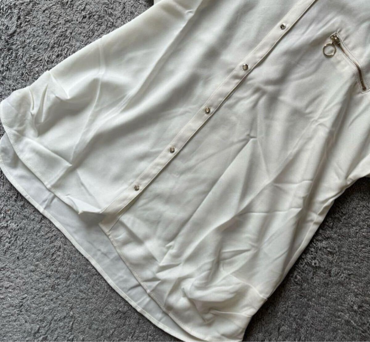 リングジップ部分レース半袖ブラウスアイボリーです。 未使用タグ付きです。 自宅保存なので細かい事を気になさる方はご入札を避けて下さいね♪ サイズはMサイズです。 平置きで身幅56センチ 着丈74センチ 素人なので多少の差はご了承ください。 品質はポリエステル100% レース 綿70% ナイロン30%です。 実際のお色と画像は光の具合により多少異なる場合があります。 48時間以内にご連絡いただける方、 お取り置きを含めてもご入金を 簡単決済期限以内にしていただける方のご入札をお願いいたします。 | |||