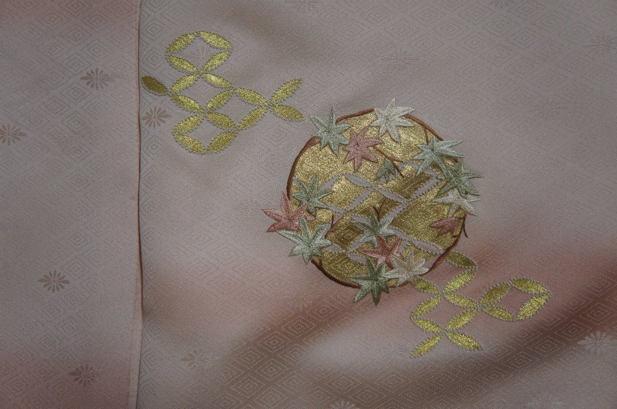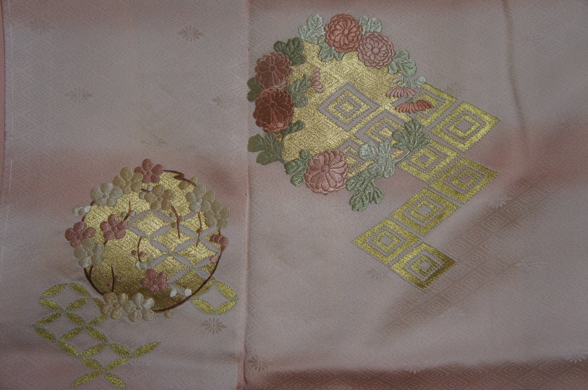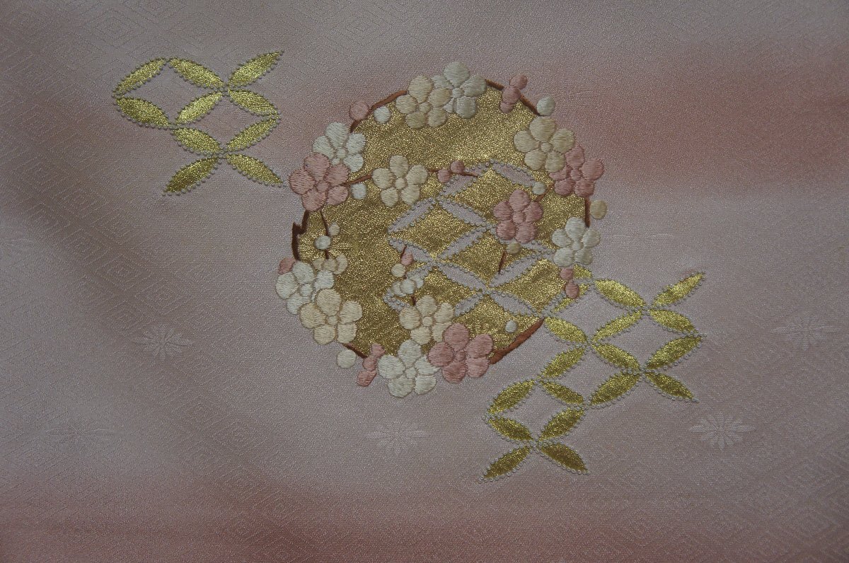 柄付乙女色ぼかし金彩刺繍花丸模様