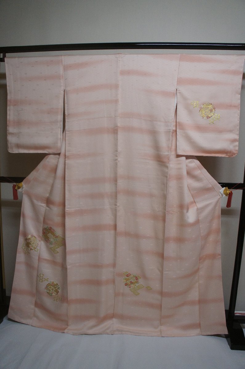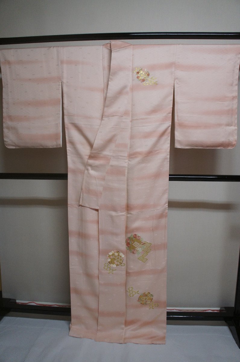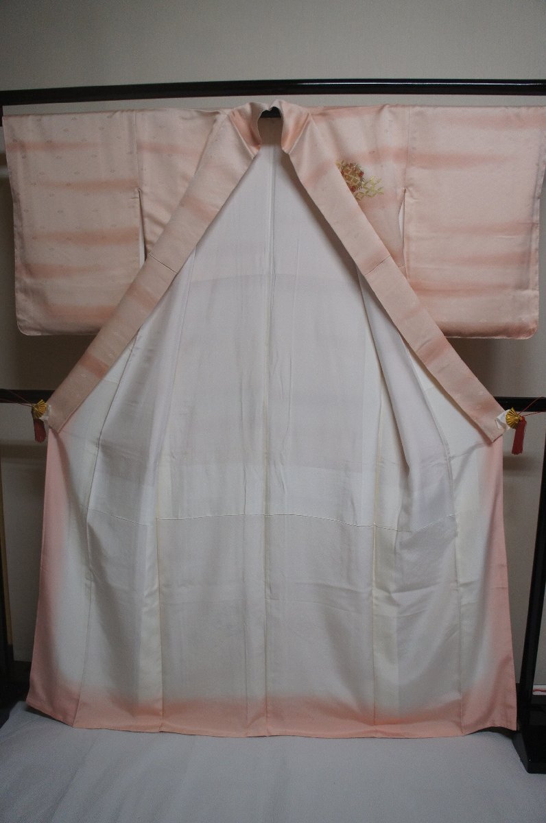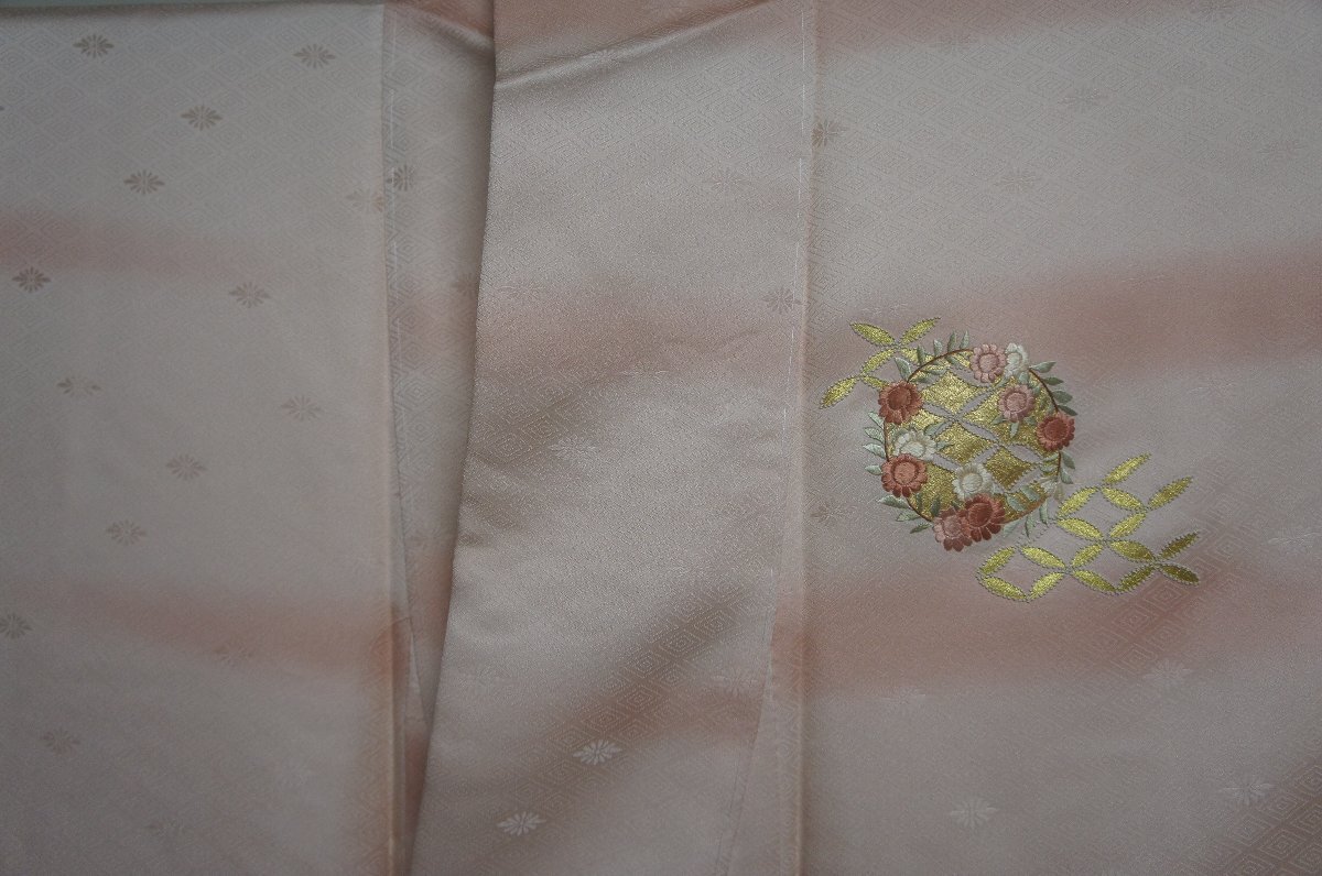 商品名特選正絹乙女色ぼかし金彩刺繍花丸模様未着用附下[H16487]