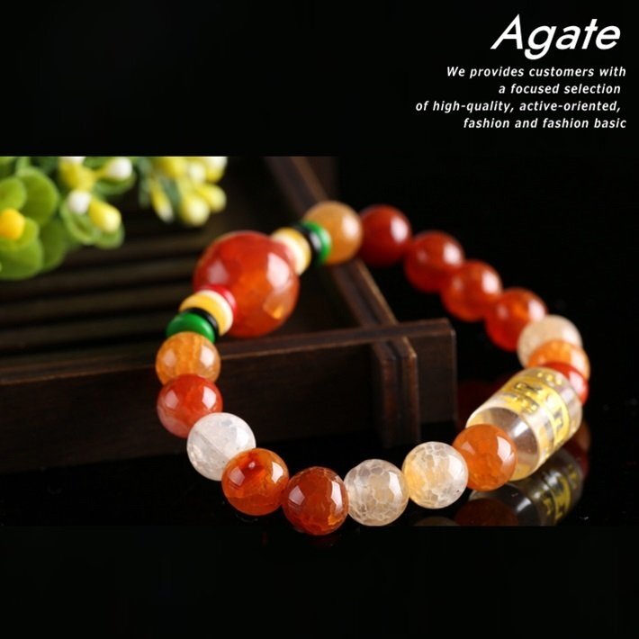 パワーストーン ブレスレット メンズ レディース 六字真言 瑪瑙 アゲート 天然石 運気UP 7992055 オレンジ 新品 1円 スタート