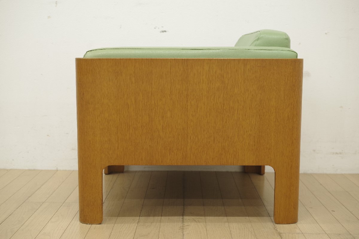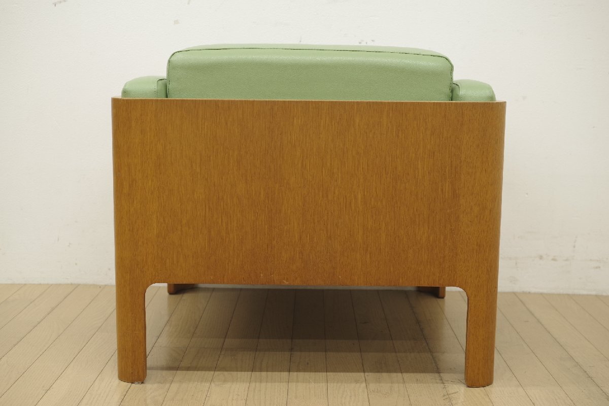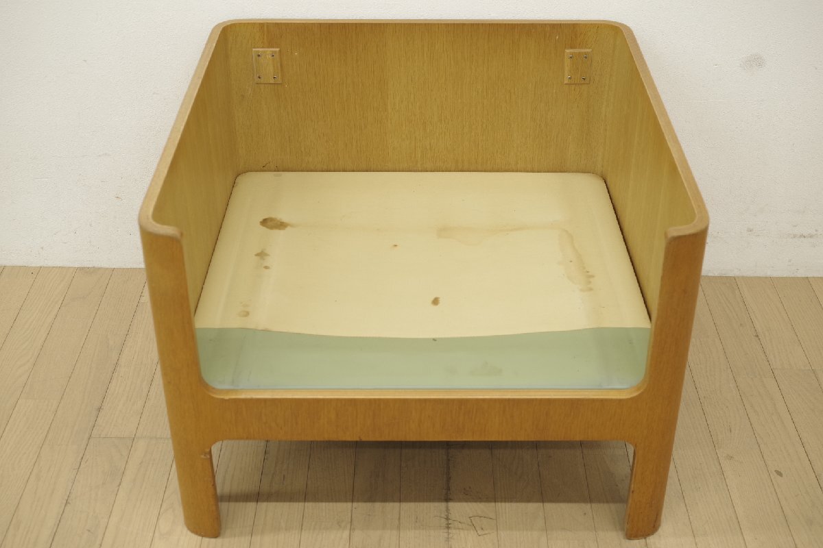 | 【商品紹介】 天童より 1人掛けソファのご紹介です。 剣持勇デザインのHacoシリーズは、1961年、国立京都国際会館のロビー用にデザインされました。 身体になじむソフトなクッションを一体形成のウッドフレームで包み込んだ個性的なデザインが特徴です。 ※合皮仕様となります。 詳細は、商品ホームページにてご参照ください。 是非、この機会にご検討ください。 【コンディション】 中古・使用品です。 ・座面裏に落としきれないシミ汚れがございます。 ・全体的にキズや打痕、スレ、落としきれない汚れ、アームのクッション部分に日焼けによる変色等がございます。 ・突板部分の剥がれやクッションの多少のへたれ、ウェービングテープの劣化もみられますが使用には問題ございません。 経年によるダメージはみられますが、まだまだご使用頂ける状態です。 ※清掃、撮影時に目立つ箇所を抜粋して写真掲載しておりますが、同等の傷などがあるものとご了承ください。尚、商品ページの追加写真にて状態をご確認の上、ご検討いただけますよう、お願いいたします。 この他にも商品を多数出品しておりますので、こちらから御覧下さい。 | ||