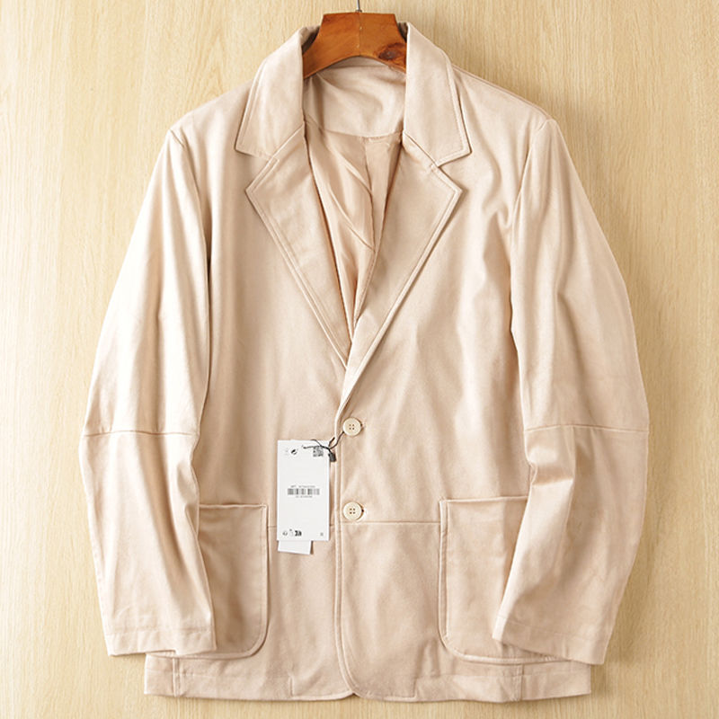 Y6484-S カーキ 新品 北欧発 高品質 テーラードジャケット スエード ノッチドラペル 無地 通勤 ノーアイロン スリム メンズ ビジネス